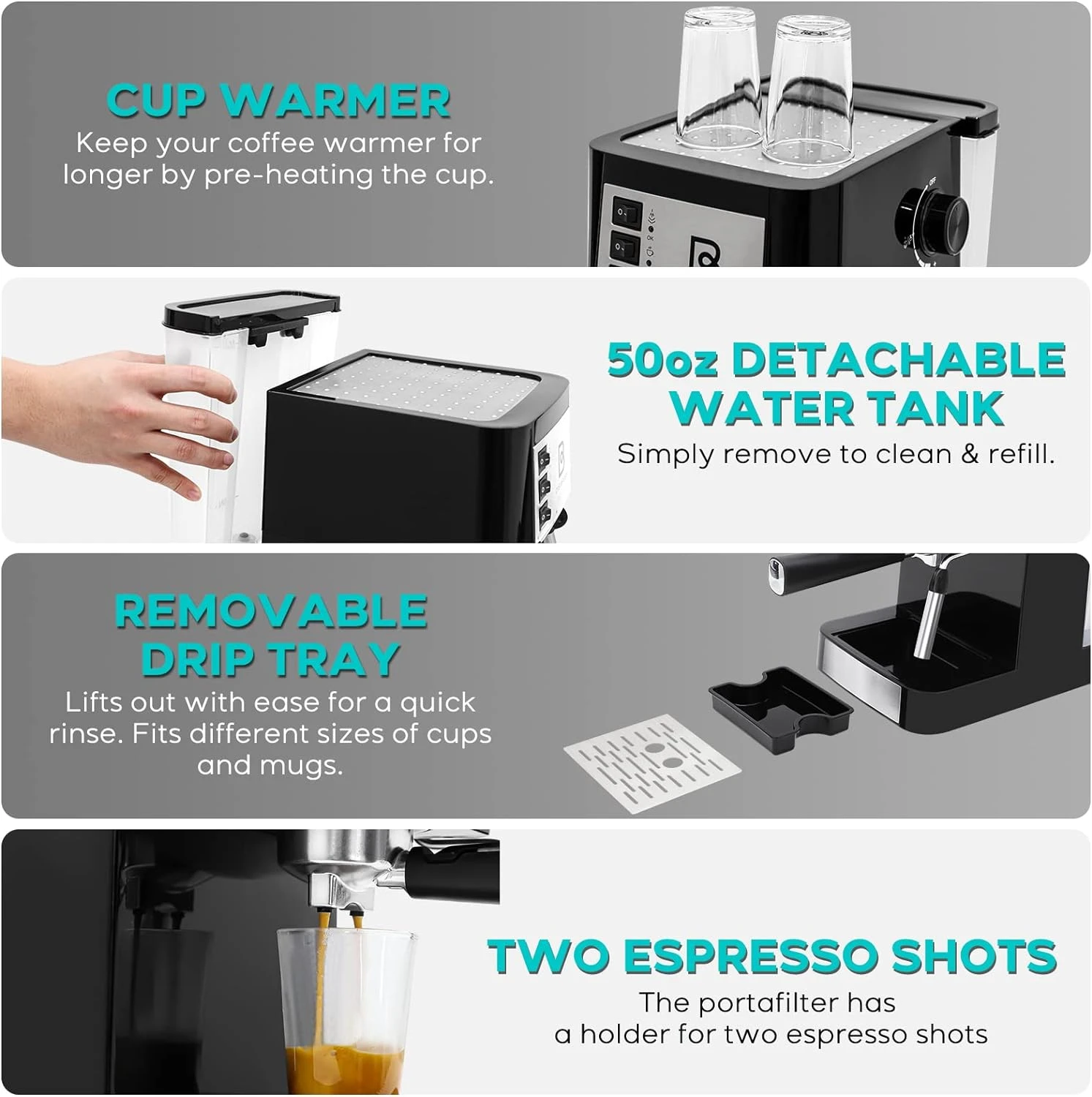 | Special Feature | Cappuccino machine for home, Espresso maker with 50 oz removable water tank, Espresso machine with milk frother, Coffee Machine for capuchino, Latte machine for barista |