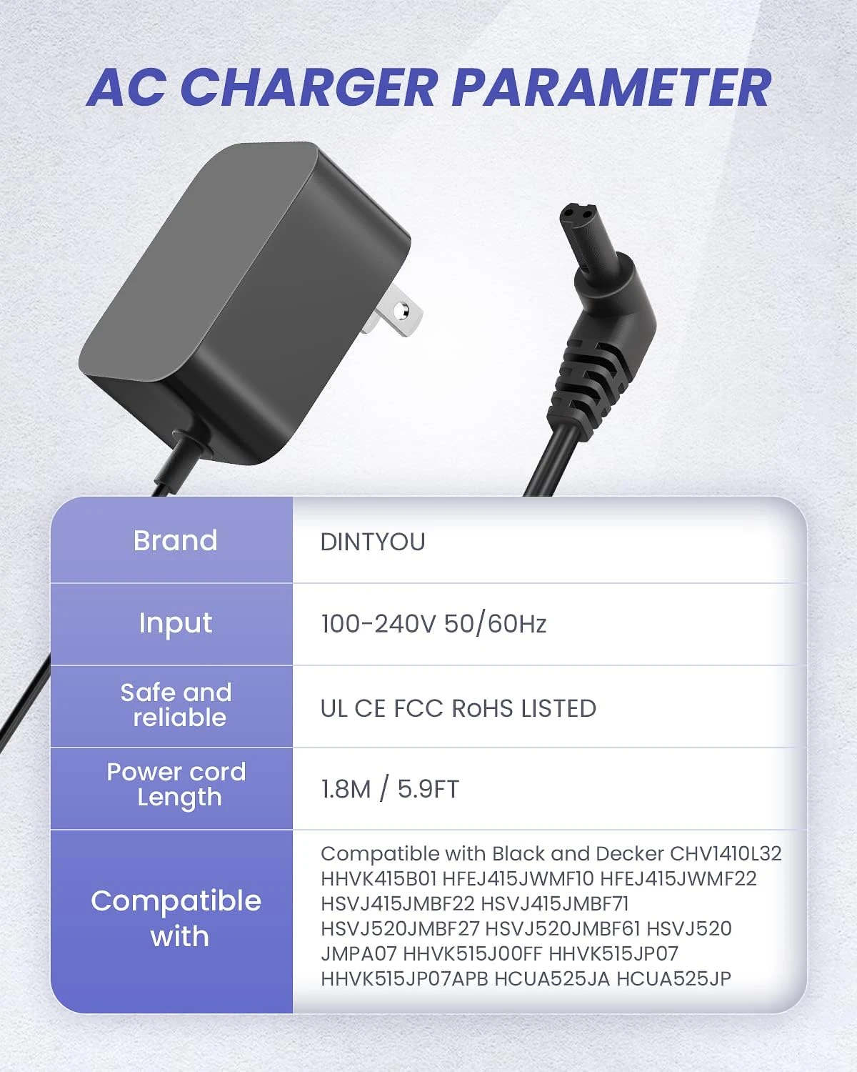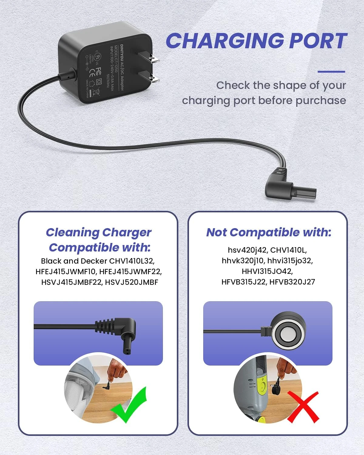 - Vacuum Charger for CHV1410L32 Type 1, HHVK515J00FF, HHVK415B01, HFEJ415JWMF10 Type 1, HFEJ415JWMF22 Type 1, HSVJ415JMBF22 Type 1, HSVJ415JMBF71 Type 1, HSVJ520JMBF27 Type 1, HSVJ520JMBF61 Type 1, HSVJ520JMPA07 Type 1,HHVK515J00FF, HHVK515JP07APB, HHVK515JP07,HCUA525JA,HCUA525JP Handheld Vacuum Jack Plug Charger