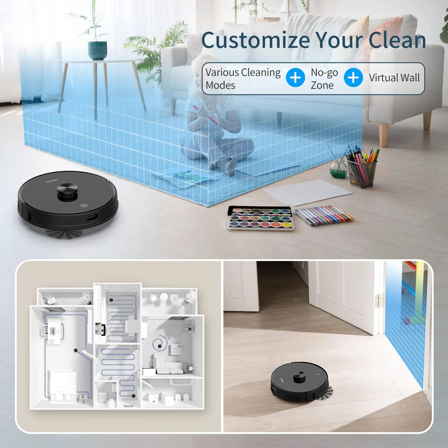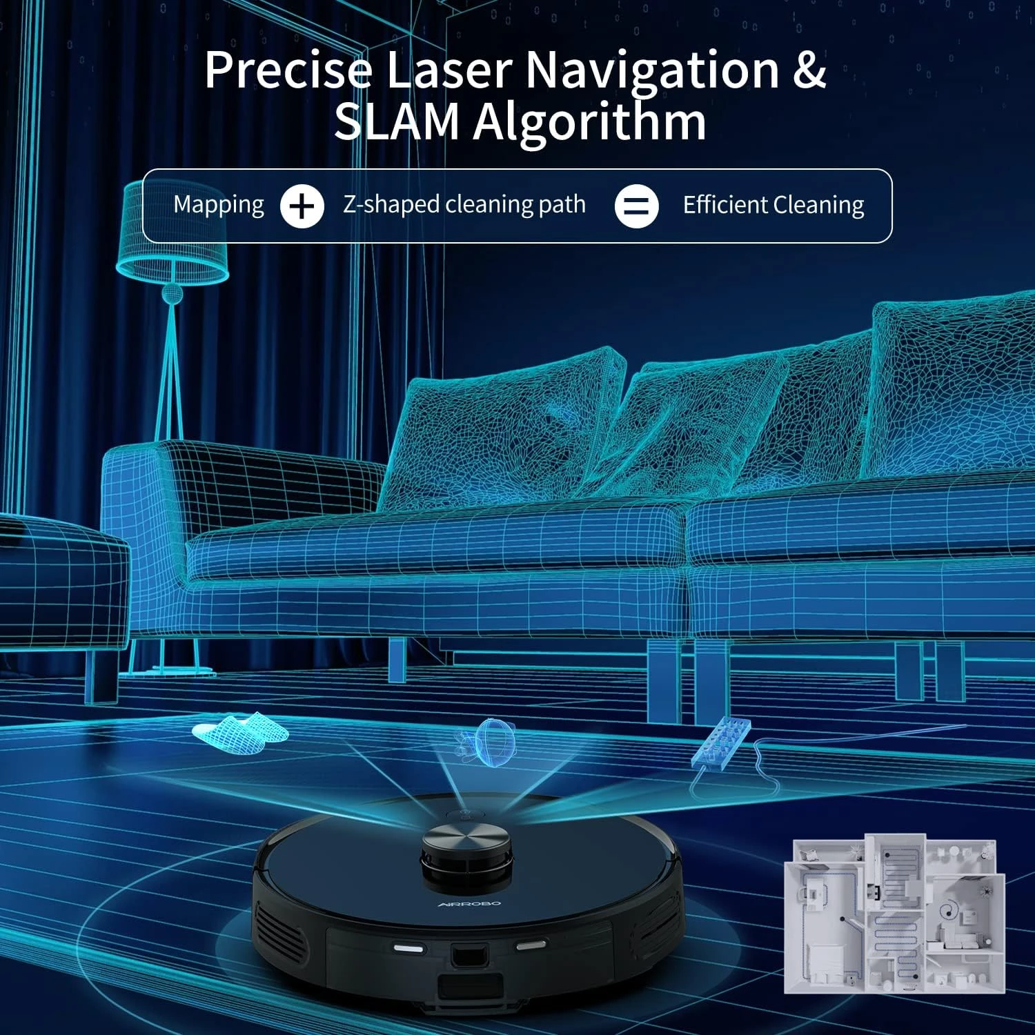 - Precise Laser Navigation & SLAM Algorithm: Map your home, chooses the most effective cleaning path and then navigates room to room for complete home coverage.