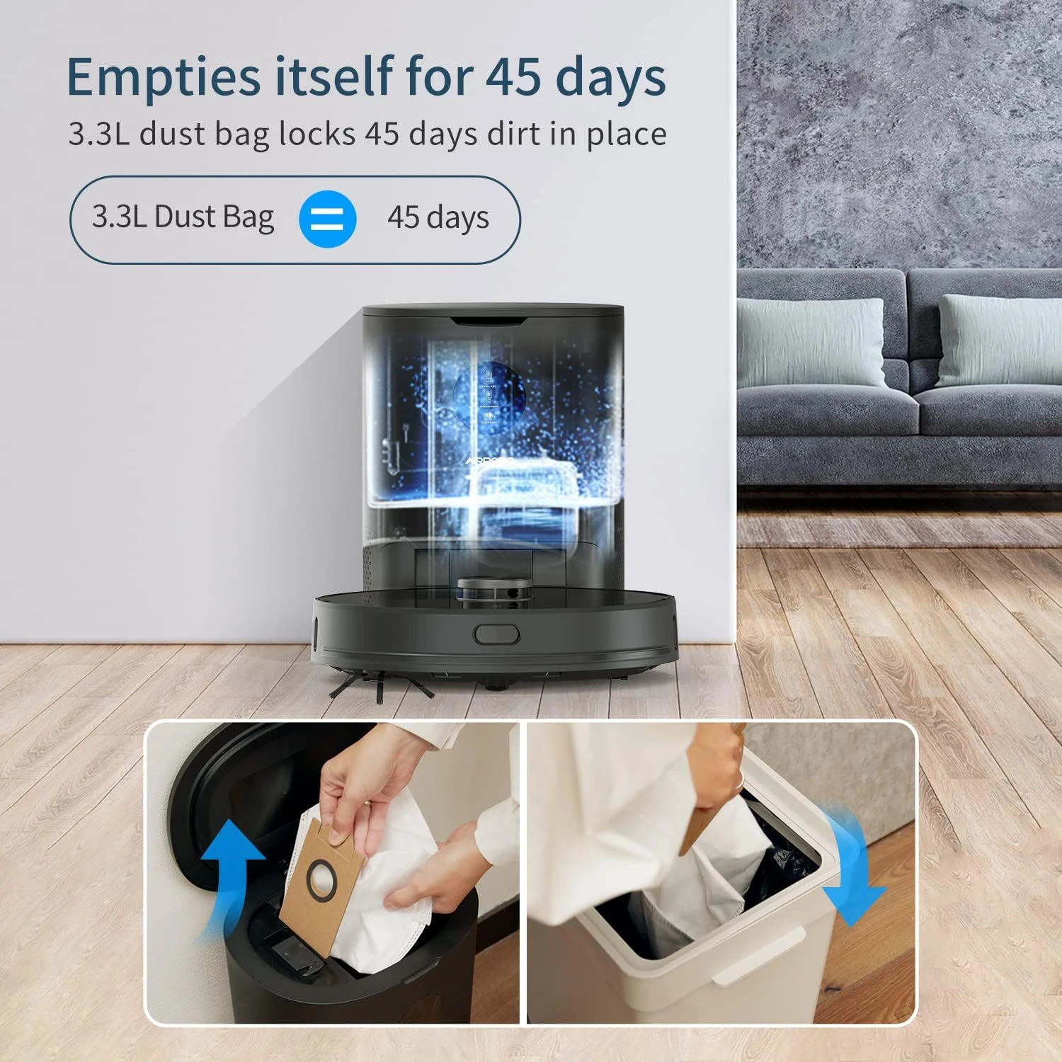 - Empties on Its Own: With automatic dirt disposal base that allows AIRROBO T10+ empty itself for up to 45 days.