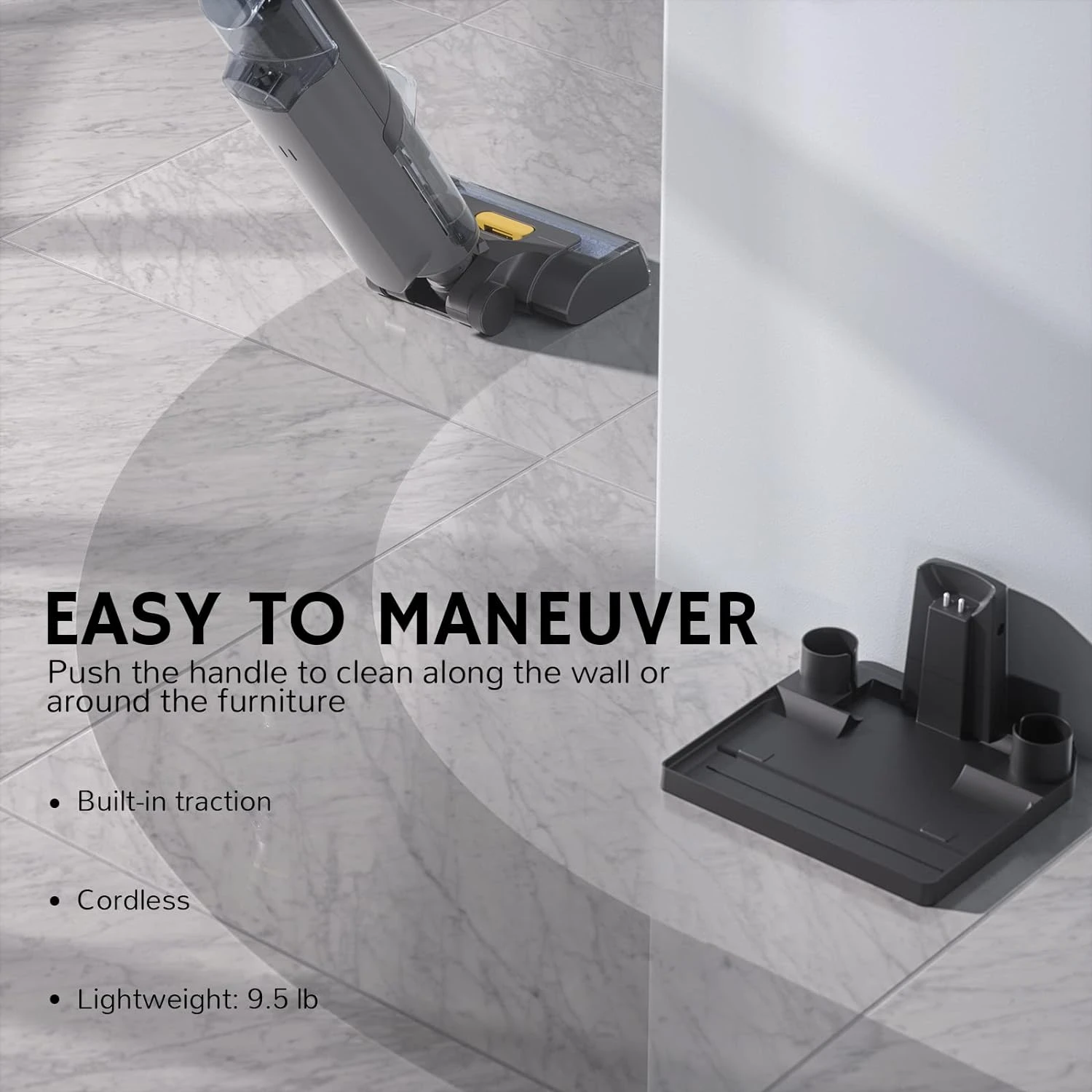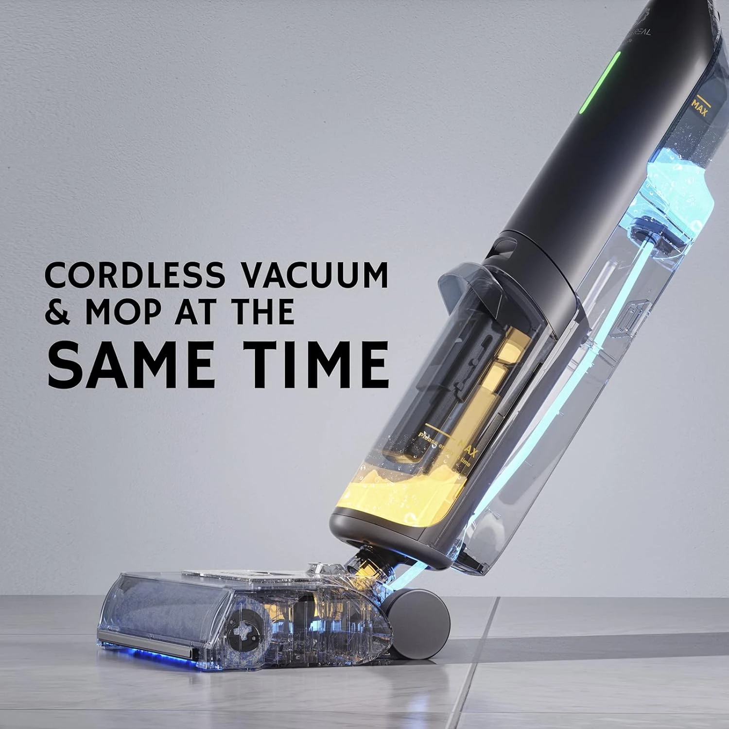 - Smart Floor Cleaner: Vacuum, mop and wash with just one stroke. Switch between auto mode and suction with one button, or flip on max mode for stubborn stains. Powerful suction and mopping quickly eliminate wet or dry messes from hardwood floors, sealed wood floors, laminates, vinyl floors, tile floors, and more.
