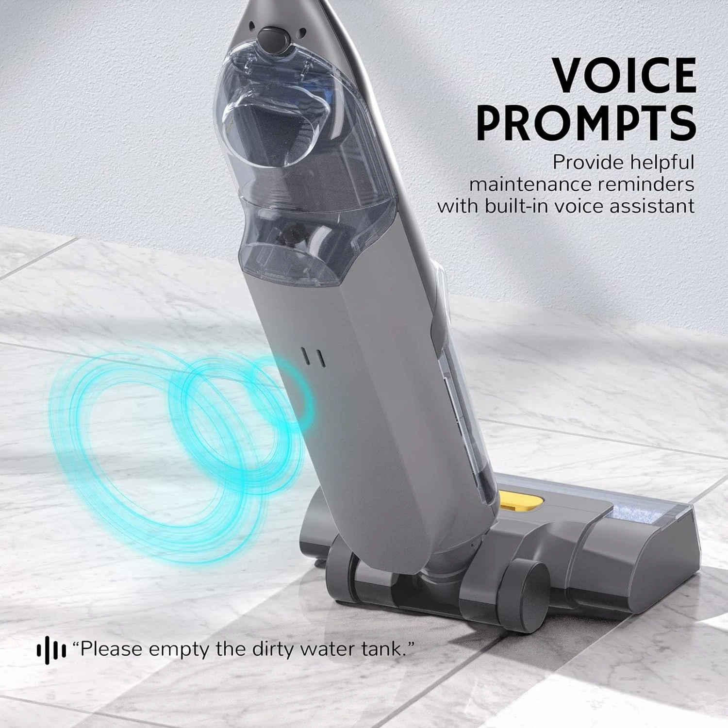 - Smart Voice Assistant: Provide real-time working status and cleaning controls, including dirt and battery levels, suction power, and warnings about feature malfunctions. The voice assistant can be muted in the options.