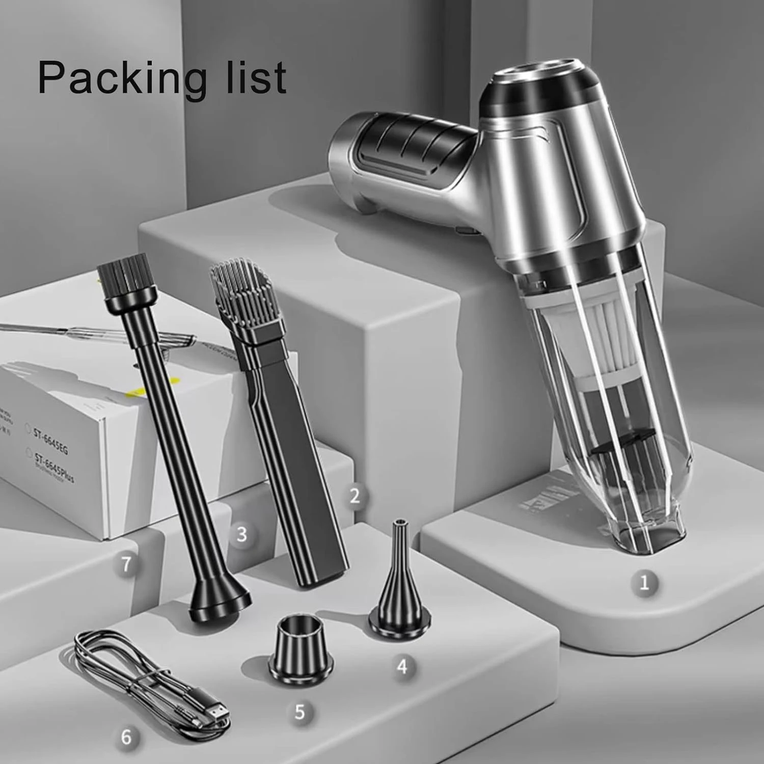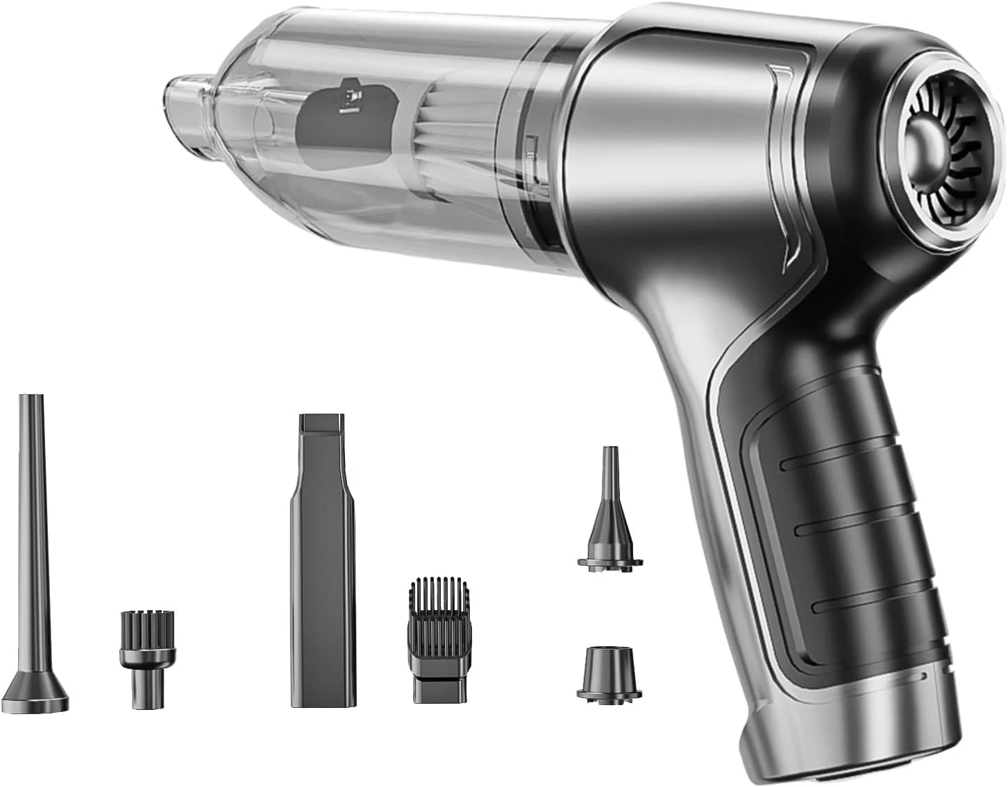 - Multifunctional Car Handheld Vacuum This wet dry vacuum cleaner has sucking and blowing function, not only sucking up dust, but also blowing away the dust, One end of the accessory connection is the vacuuming effect, can as dust buster, and the other end is the blowing function, can as air duster. With different accessories(4 suction nozzles, 2 Brush Tool). Long nozzle for cleaning deeper, tighter spaces; Small nozzle suction can efficiently clean small crevices; Long mouth blowing head can blow away large stains or blow up balloons, etc
