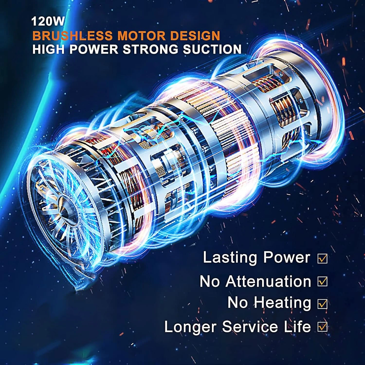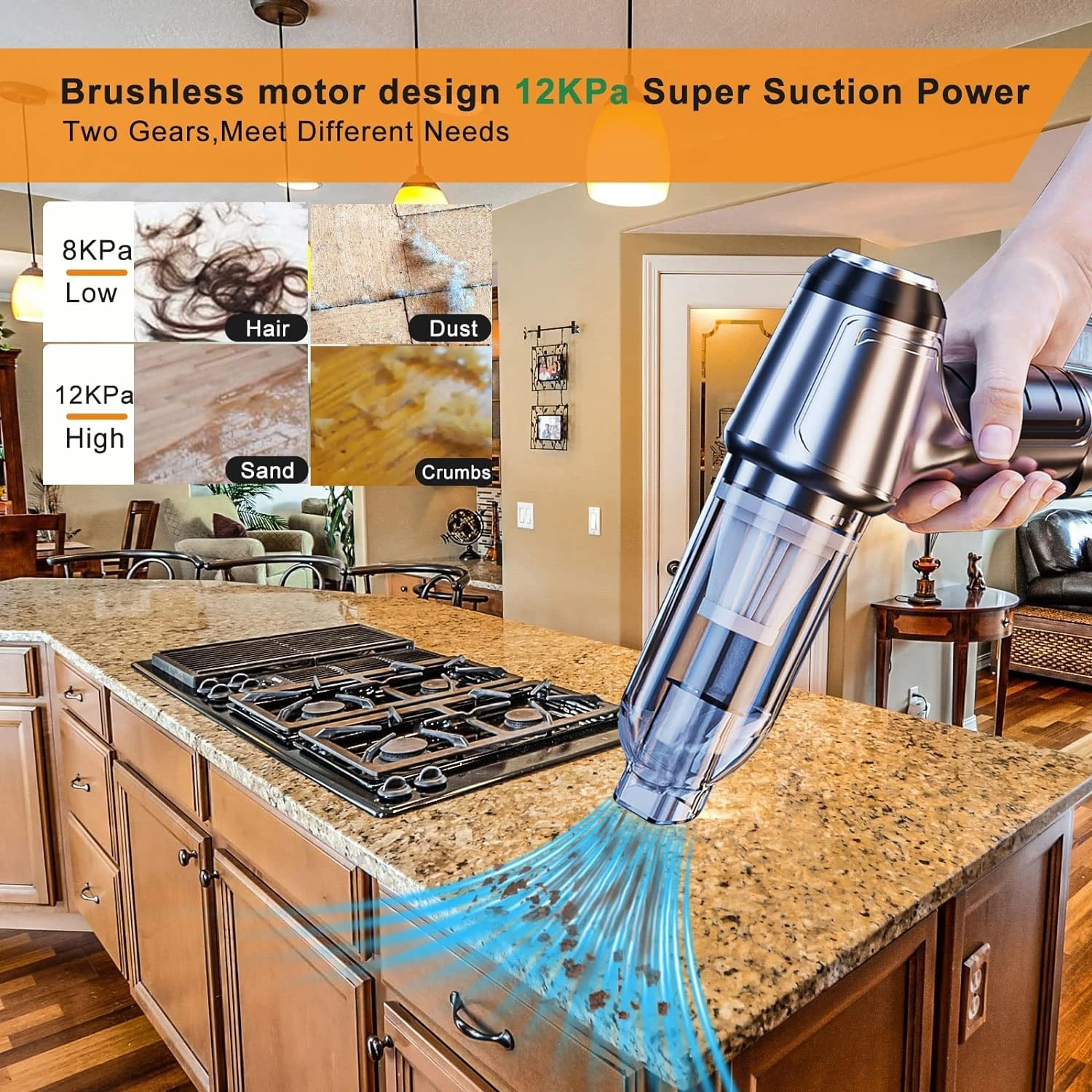 - Two Power Suction Modes & Cordless 12000Pa Strong Suction AROUXIN cordless handheld vacuum with cordless design, and the car vacuum cleaner is built-in latest brushless motor delivers a surging 12000Pa of suction,75000rpm high speed rated,efficiently sucking up even the most stubborn dust and fluff. Powerful suction with two suction mode: Standard suction (8000PA) and Max suction (12000PA). It effectively to vacuum dust, crumbs, pet hair from carpets, kitchen,car, living room and offices with outstanding performance. Note:Long press on/off button for 3 seconds to turn on