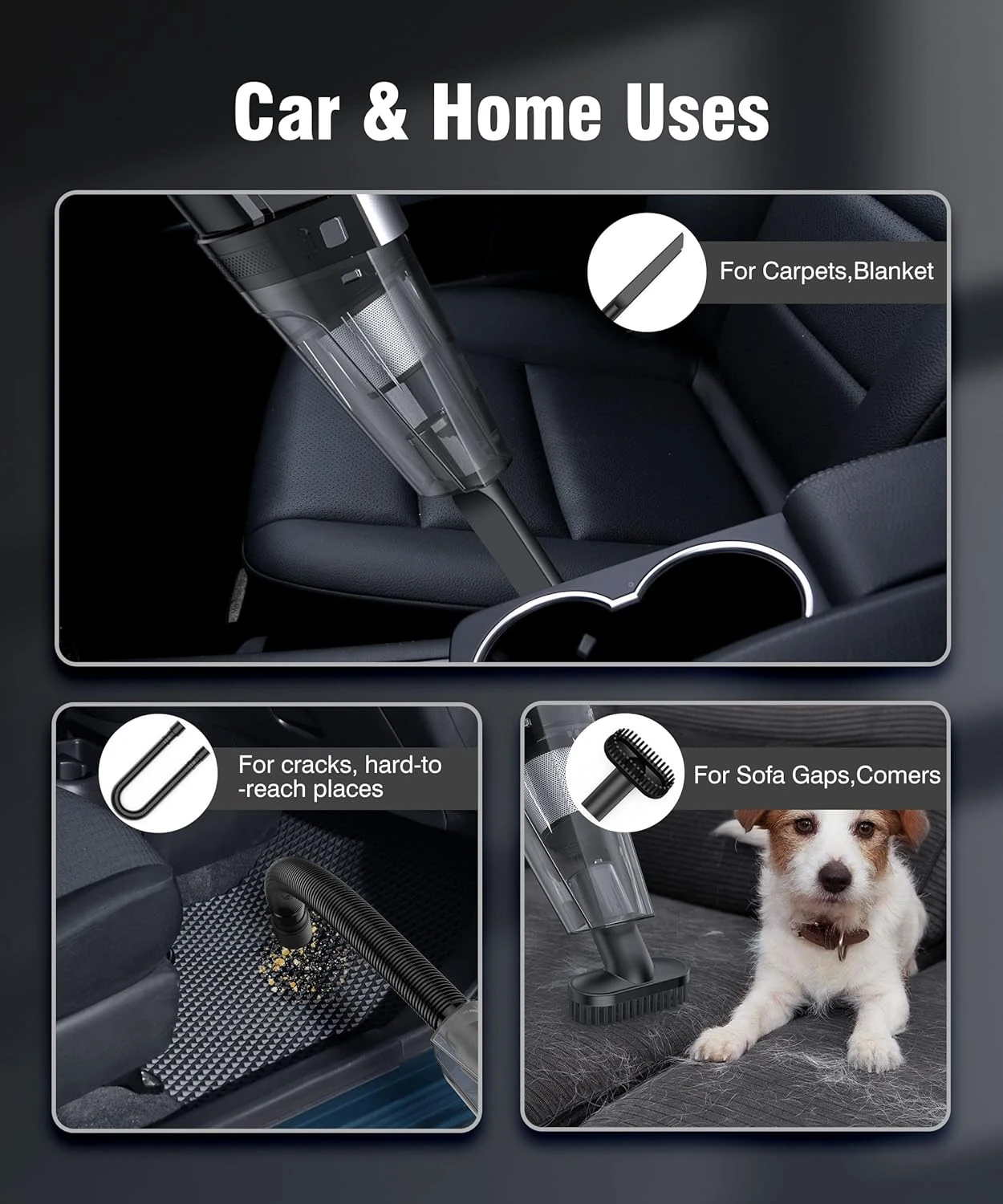 - 【Assorted Brushes Clean Most Surfaces】3 professional versatile nozzles ready to meet your cleaning needs of dust, dirt, debris and pet hair. The Crevice Nozzle is for narrow gaps and corners like Sofa Gap. The Brush Nozzle is for carpet and hair. The Flexible Hose is for bottom of the seat and hard-to-reach places. Built-in bright LED light, this portable vacuum is a good helper to clean in dark places or night