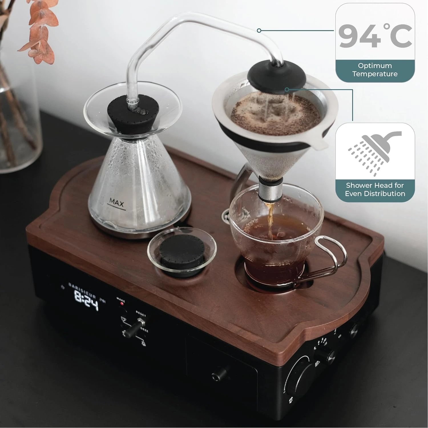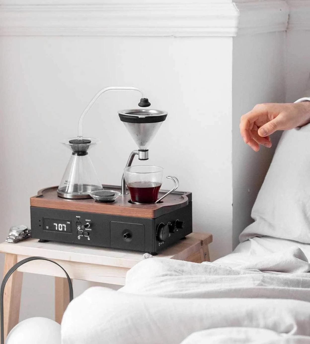 - Brewing: Set Barisieur to start brewing 5 mins. before the alarm, on the alarm, or 5, 10, 15 mins. afterwards. Hold ‘Make’ button for 3 seconds to brew-on-demand