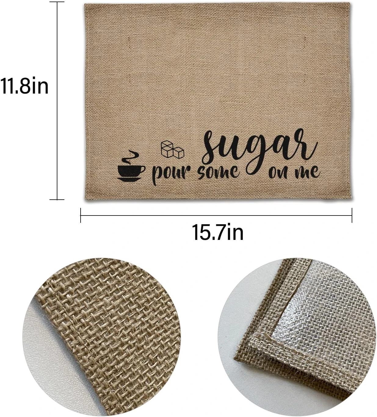 - PERFECT COFFEE MAKER MAT – This beautifully crafted burlap placemat will complement any coffee bar accessories in your kitchen. Ideal as a coffee machine mat or a coffee pot mat for countertops, coffee corner or nooks.