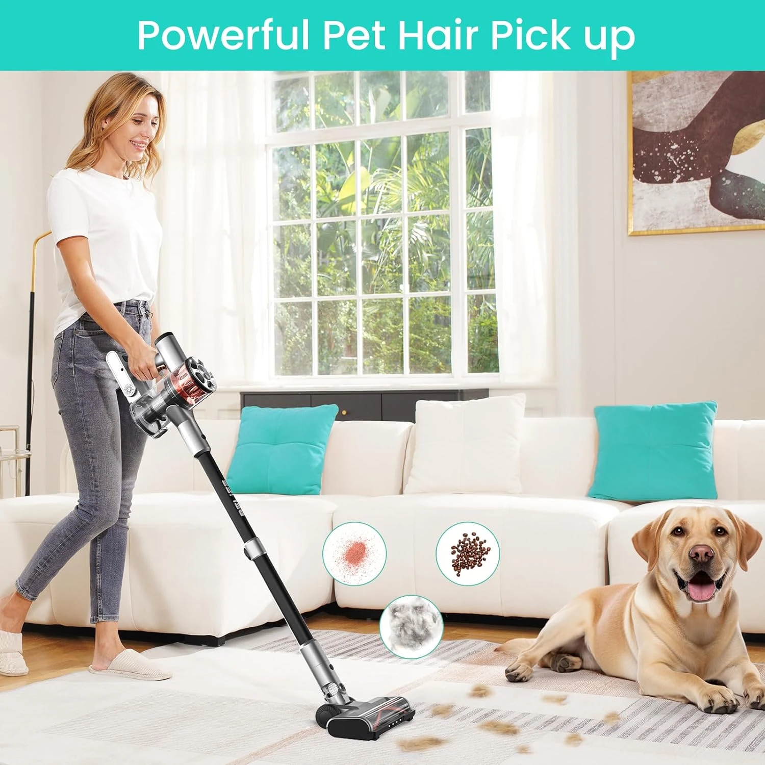 - 🎁Pet Friendly: With a wider & larger brush roller and v-shaped bristles, you can powerfully pick up pet hair, dust, and other messes. The comb design of the floor brush can reduce hair wrapping around the roller, perfect for families with pets.