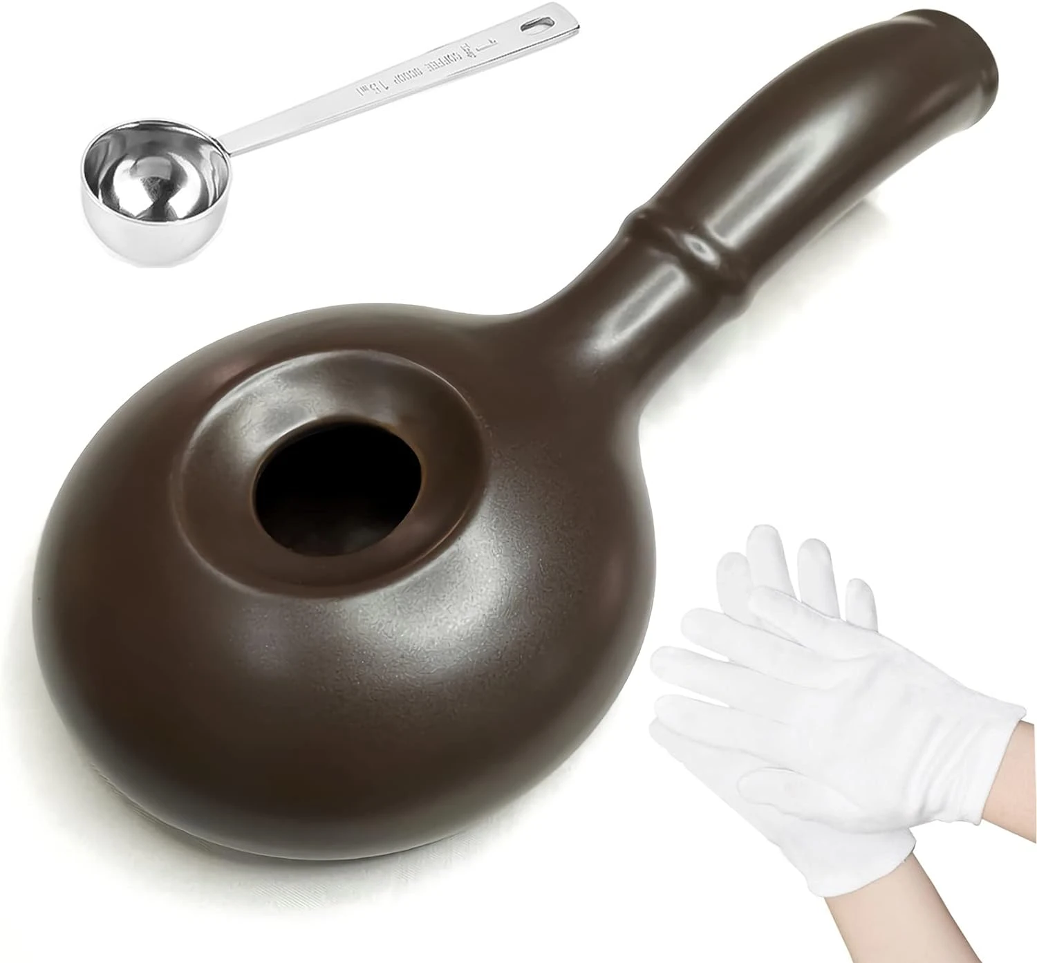 - Content: 1 ceramic roaster,1 coffee spoon and 1 insulation gloves.