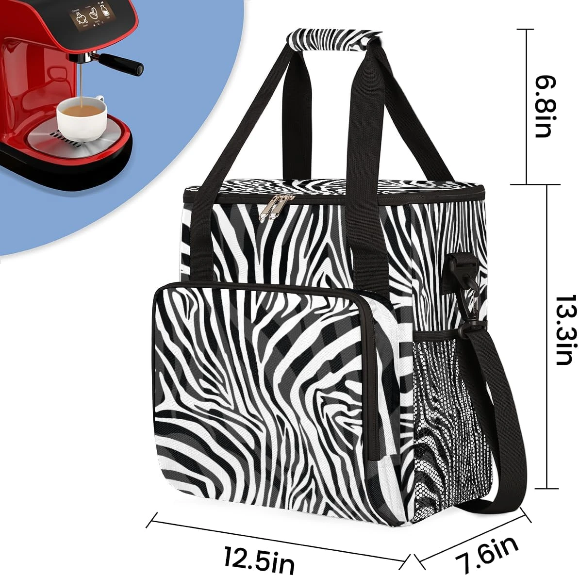 Cfpolar Coffee Maker Carrying Bag Abstract Animal Zebra Pattern Travel Coffee Machine Bag Carrying Organizer Case Portable Single Serve Coffee Brewer Tote Bag Storage Bag For Camping Picnic