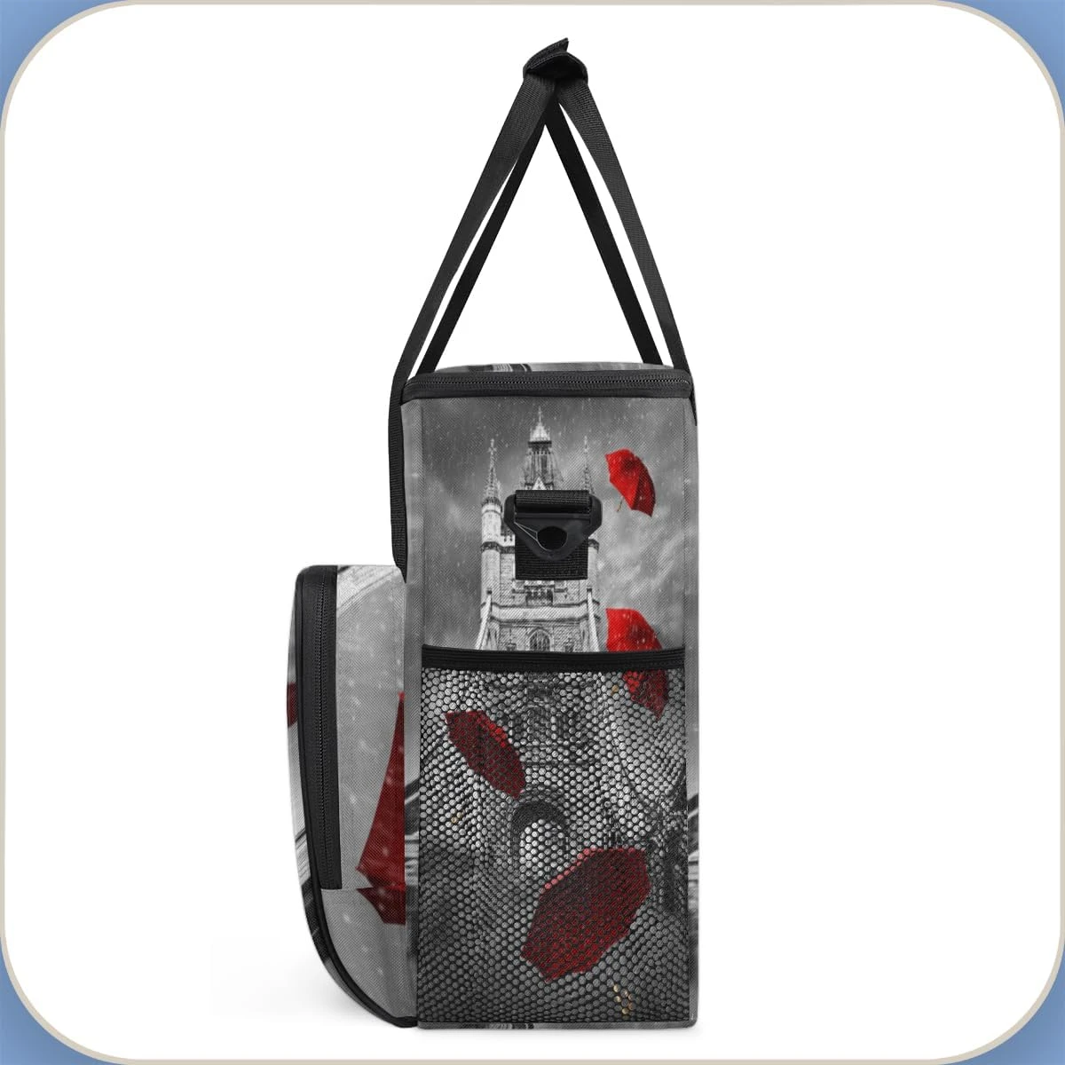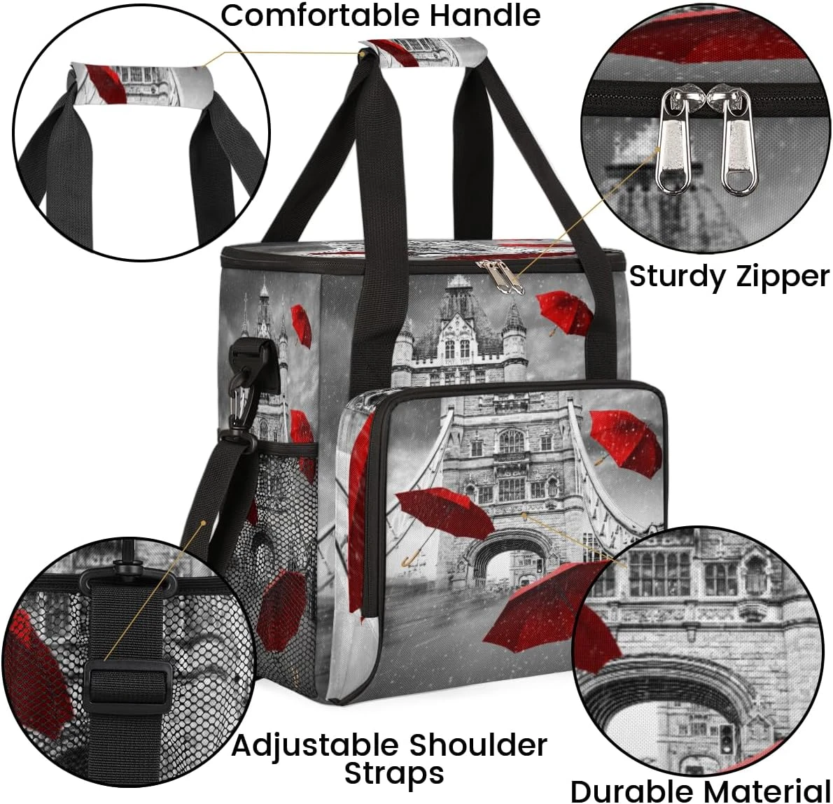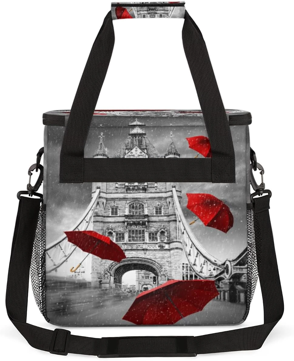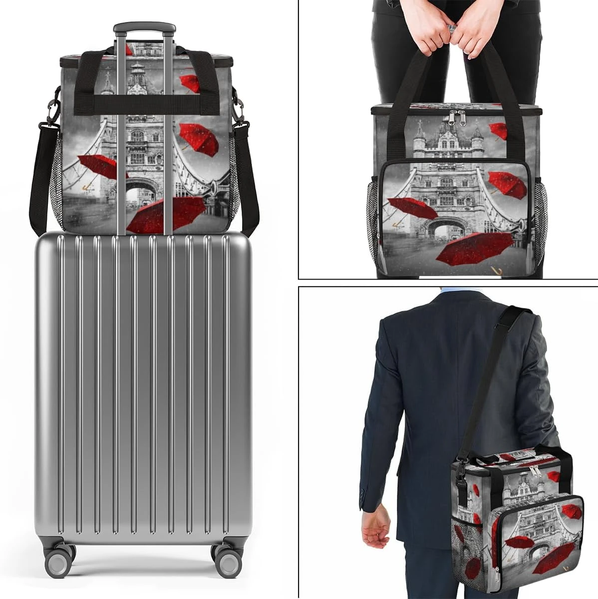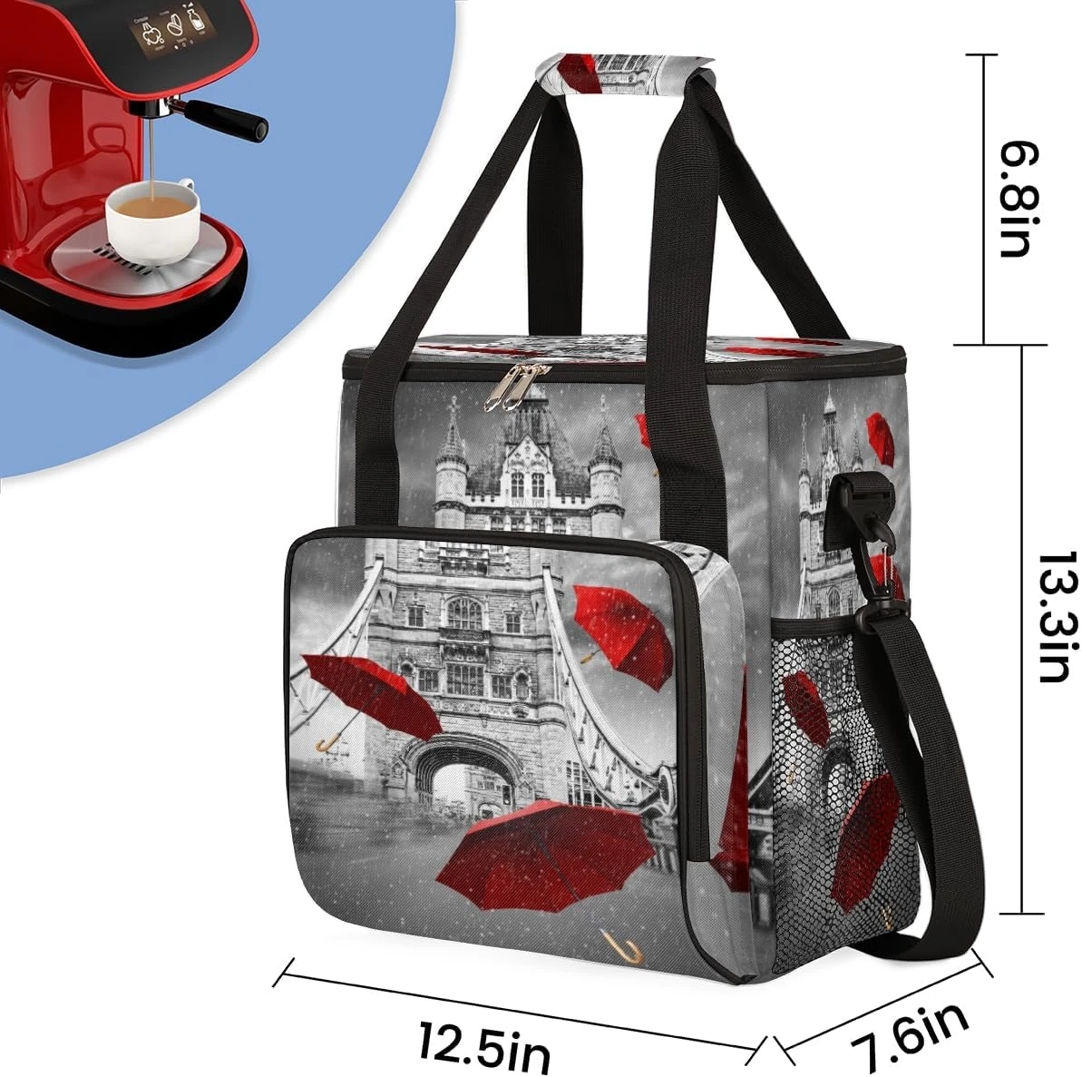 Cfpolar Coffee Maker Carrying Bag Bridge Flying Red Umbrellas Travel Coffee Machine Bag Carrying Organizer Case Portable Single Serve Coffee Brewer Tote Bag Storage Bag For Camping Picnic