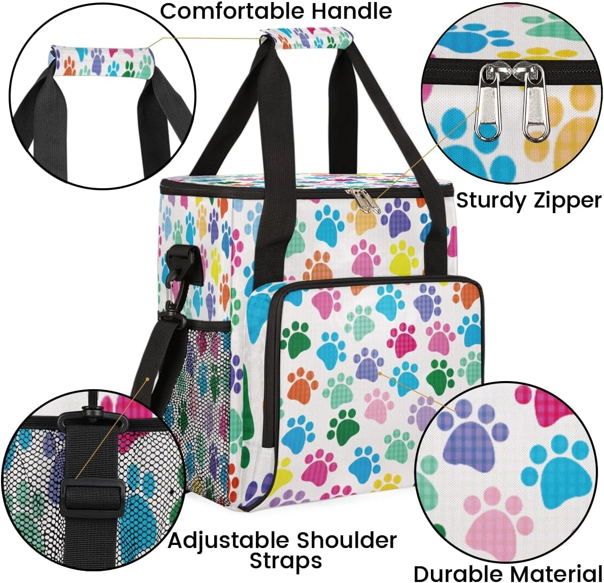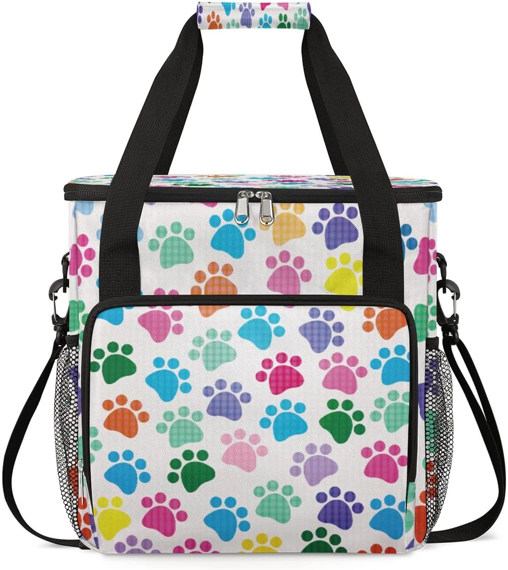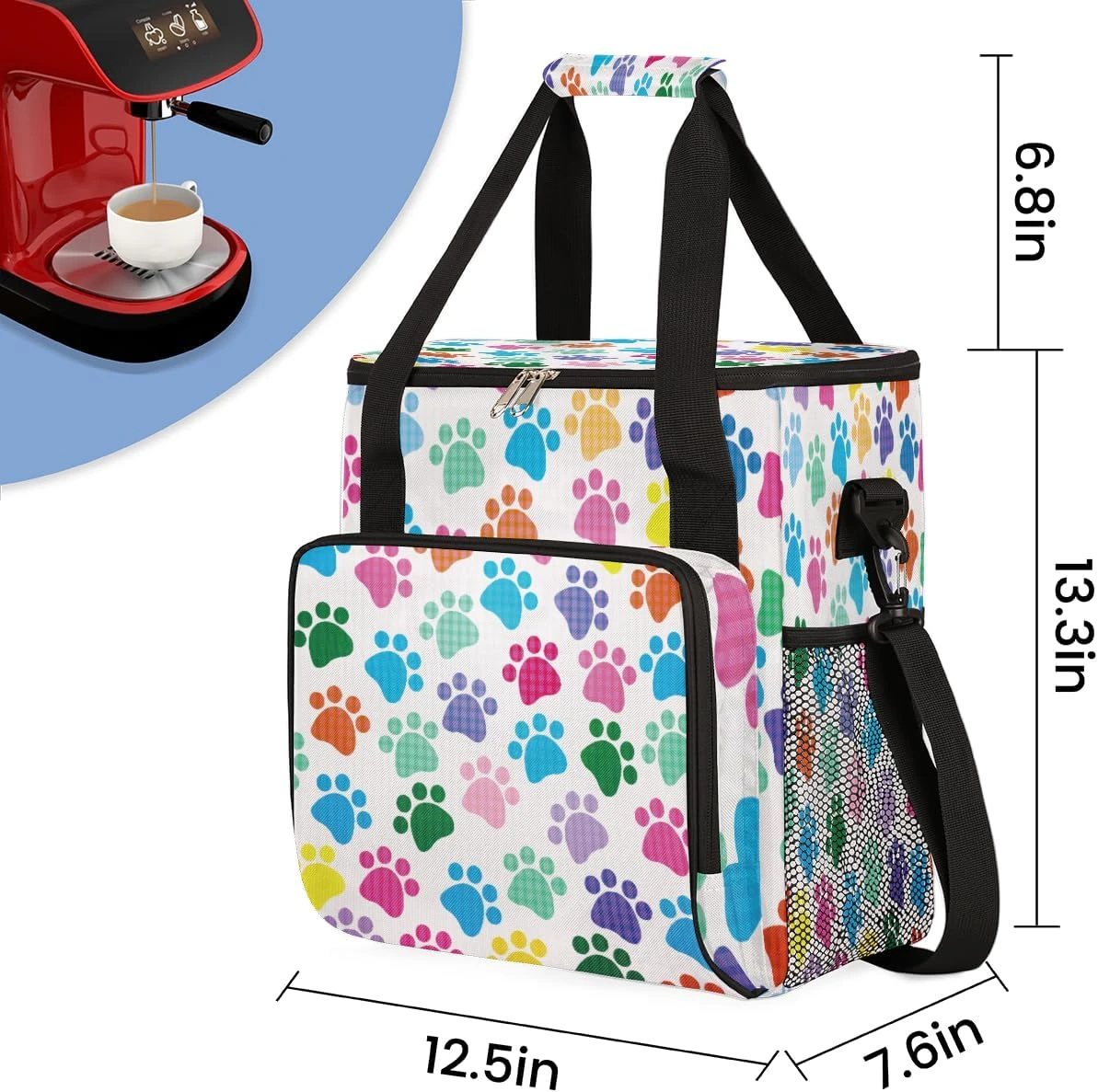 Cfpolar Coffee Maker Carrying Bag Colorful Paw Print Travel Coffee Machine Bag Carrying Organizer Case Portable Single Serve Coffee Brewer Tote Bag Storage Bag For Camping Picnic