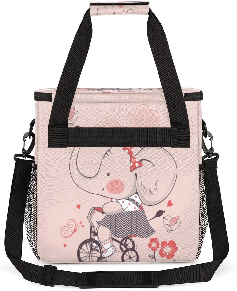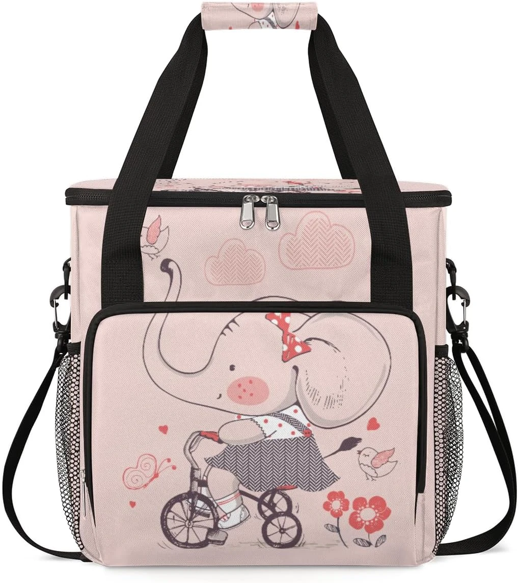 Cfpolar Coffee Maker Carrying Bag Cute Elephant Pink Butterfly Travel Coffee Machine Bag Carrying Organizer Case Portable Single Serve Coffee Brewer Tote Bag Storage Bag For Camping Picnic