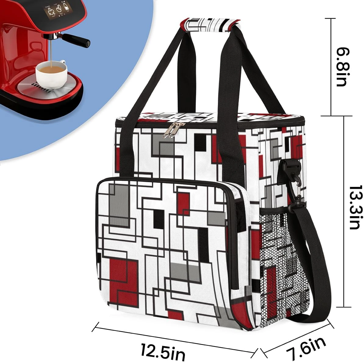 Cfpolar Coffee Maker Carrying Bag Geometric Lines Travel Coffee Machine Bag Carrying Organizer Case Portable Single Serve Coffee Brewer Tote Bag Storage Bag For Camping Picnic