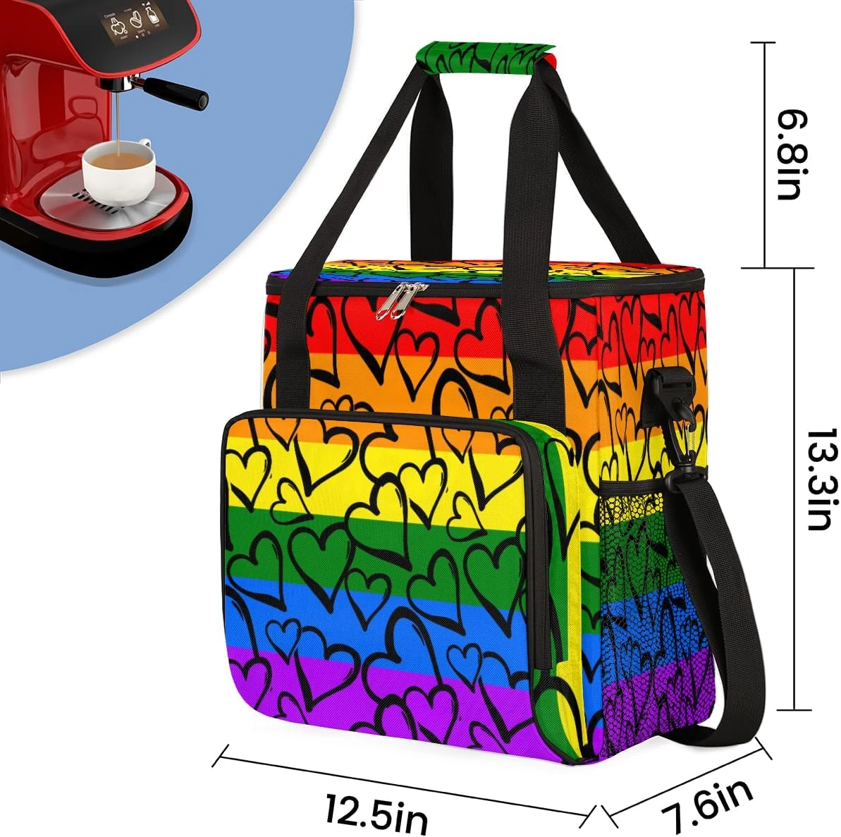 Cfpolar Coffee Maker Carrying Bag Lgbt Pride Love Heart Travel Coffee Machine Bag Carrying Organizer Case Portable Single Serve Coffee Brewer Tote Bag Storage Bag For Camping Picnic