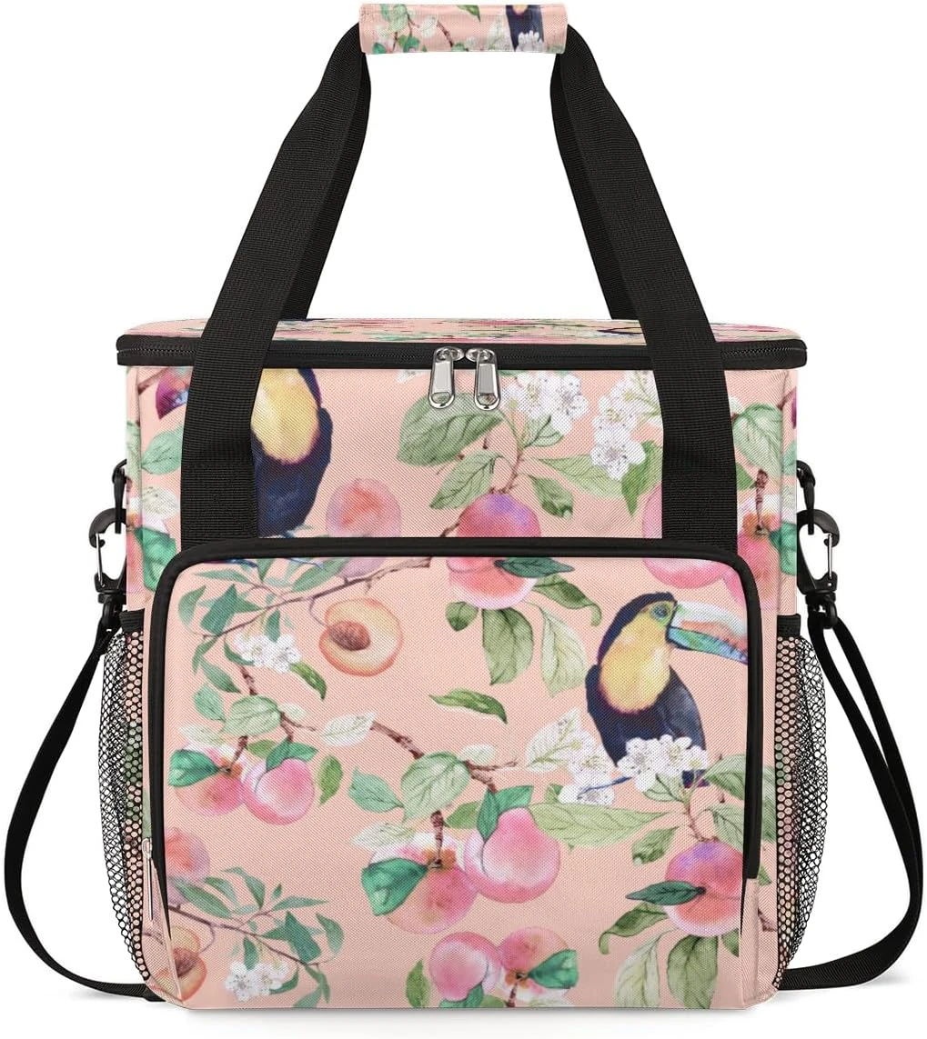 Cfpolar Coffee Maker Carrying Bag Toucans Peach Travel Coffee Machine Bag Carrying Organizer Case Portable Single Serve Coffee Brewer Tote Bag Storage Bag For Camping Picnic