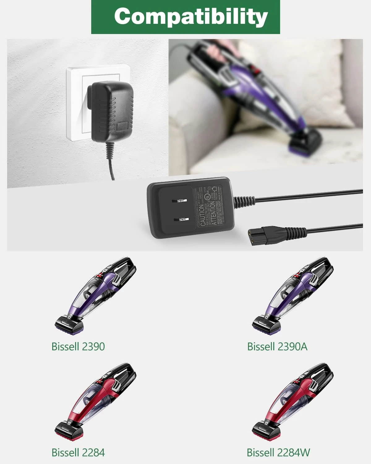 - 【Compatible Model】 This power adapter designed for Bissell Pet Hair Eraser Lithium Ion Cordless Pet Hand Vacuum 2390 2390A 23903; Bissell Auto-Mate Cordless Hand Car Vac 2284 2284W; Replacement Bissell Power Supply ZD5F230030US.