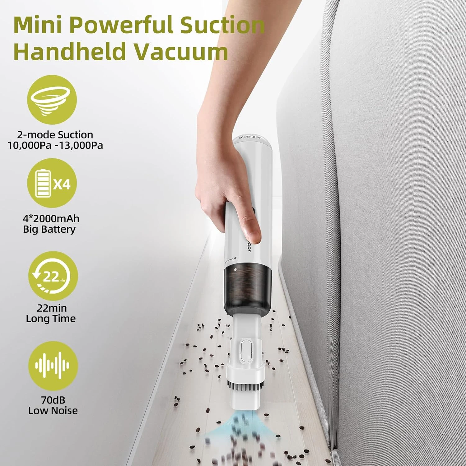 - 🌱【Powerful & Mini】Built-in 8000mAh big battery, our car vacuum has 2 adjustable powerful suction to effectively pick up dust, sand, food residue, confetti. The mini vacuum adopt compact design, which is easily clean narrow area and store in your home and car.