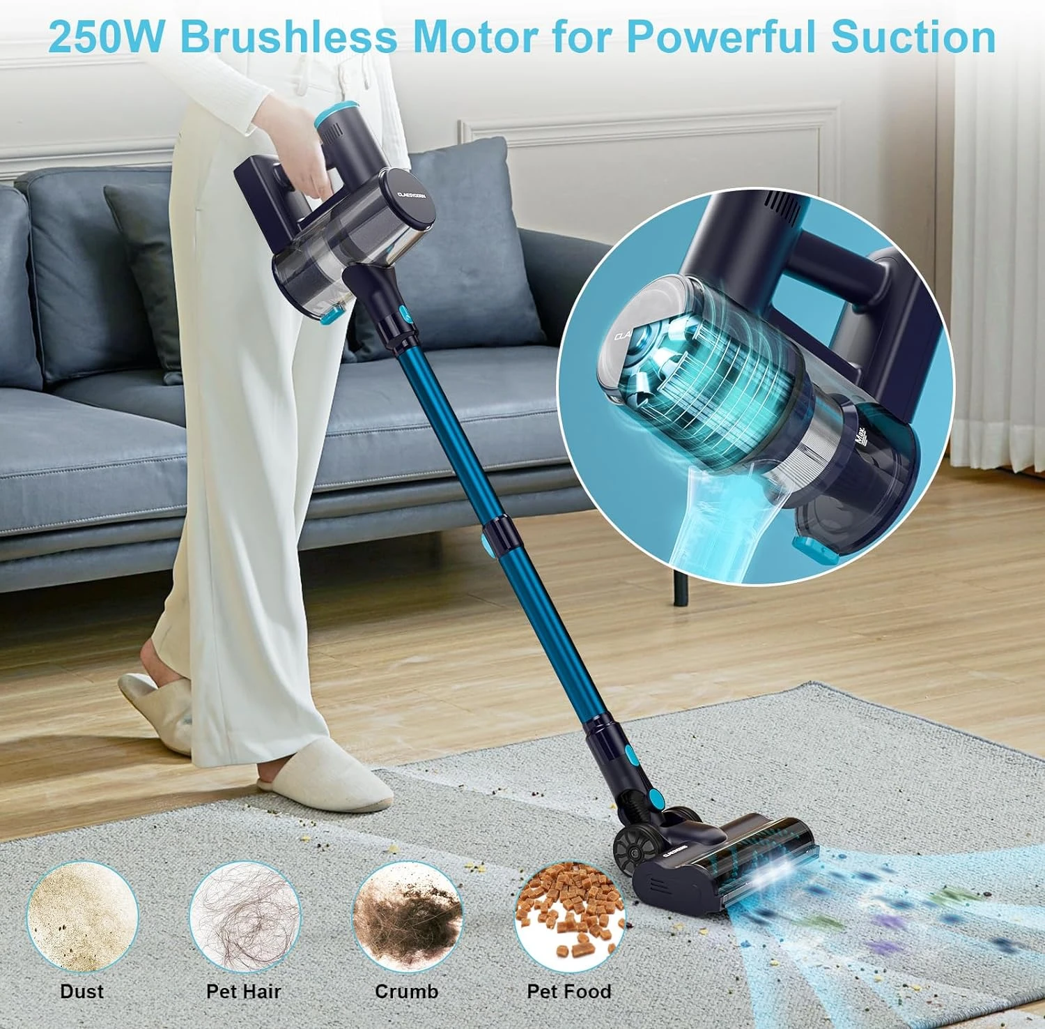 - 【45Mins Long Runtime & Self-Standing Design】With the extended detachable 2200mAh large capacity lithium-ion battery, cordless stick vacuum can clean your entire house with just one charge and its detachable battery takes only 4 hours to fully charge. Supporting both free-standing and wall-mounting, stick vacuum is more simply to store, stand and charge.