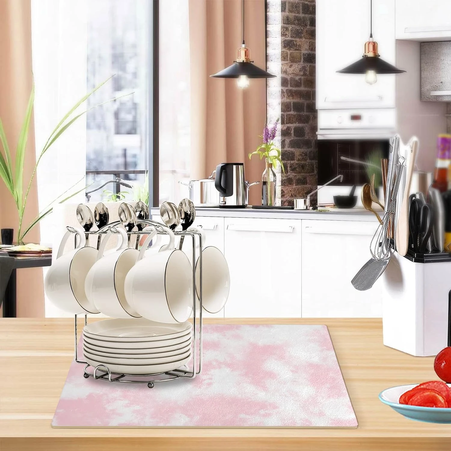 - Quick Absorb and Dry Fast. Coffee Matt for Coffee Bar Doesn’t Leave a Stain on Counter.Durable PU Heat Insulation Fabric. It Will Works Well Under Coffee Machine.