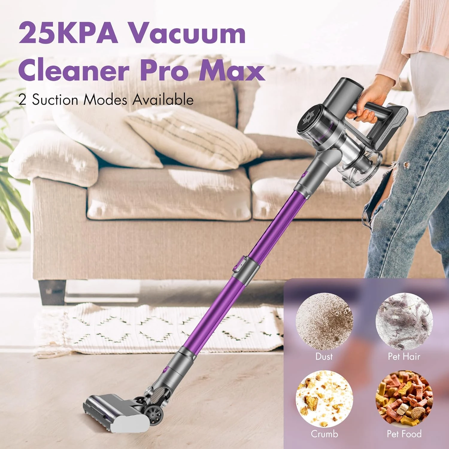 - ☘️【2 Suction Modes】Our Stick Vacuum applies 2 Automatic Suction Modes: Standard Mode & Strong Mode. The Standard Mode works with a 15Kpa suction power, strong enough to clean most surface dust and light particles; and the Strong Mode, working with a 25Kpa, has an excessive power efficiency for deep cleaning. Both mode can be freely switched by pushing 1 button. We recommend use the strong mode to clean blanket, bed and sofa.