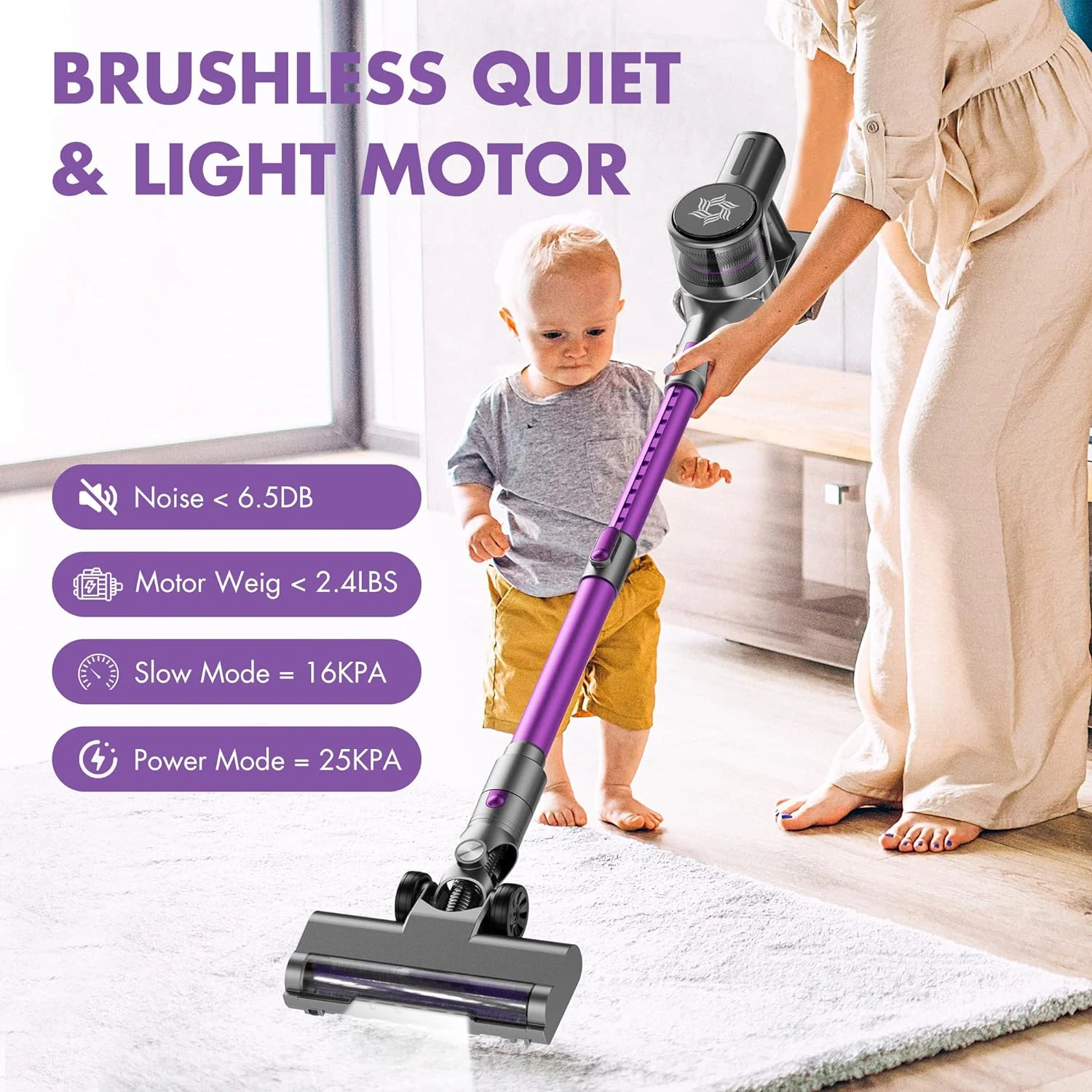 - ☘️【85AW Brushless Motor】AirWatt is the most critical information to calculate the suction efficiency of a Vacuum Cleaner. The level of 85AW means our Cordless Vacuum Cleaner has a superfluous suction power for deep cleaning on All Floor Types such as Carpet, Wood Floor, and Ceramic Tile.