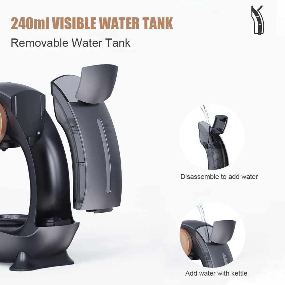 - 🍵【BPA Free and Water Level Indicator】The coffee maker machine comes with a removable 240ml visible water tank that displays measurements from MAX to MINIMUM. Allows you to monitor the water level and refill it easily. Featuring BPA-free materials, the coffee brewer is not only safe, but also sleek and modern. This one cup coffee maker machine is not just limited to making coffee, but can also be used to brew tea.