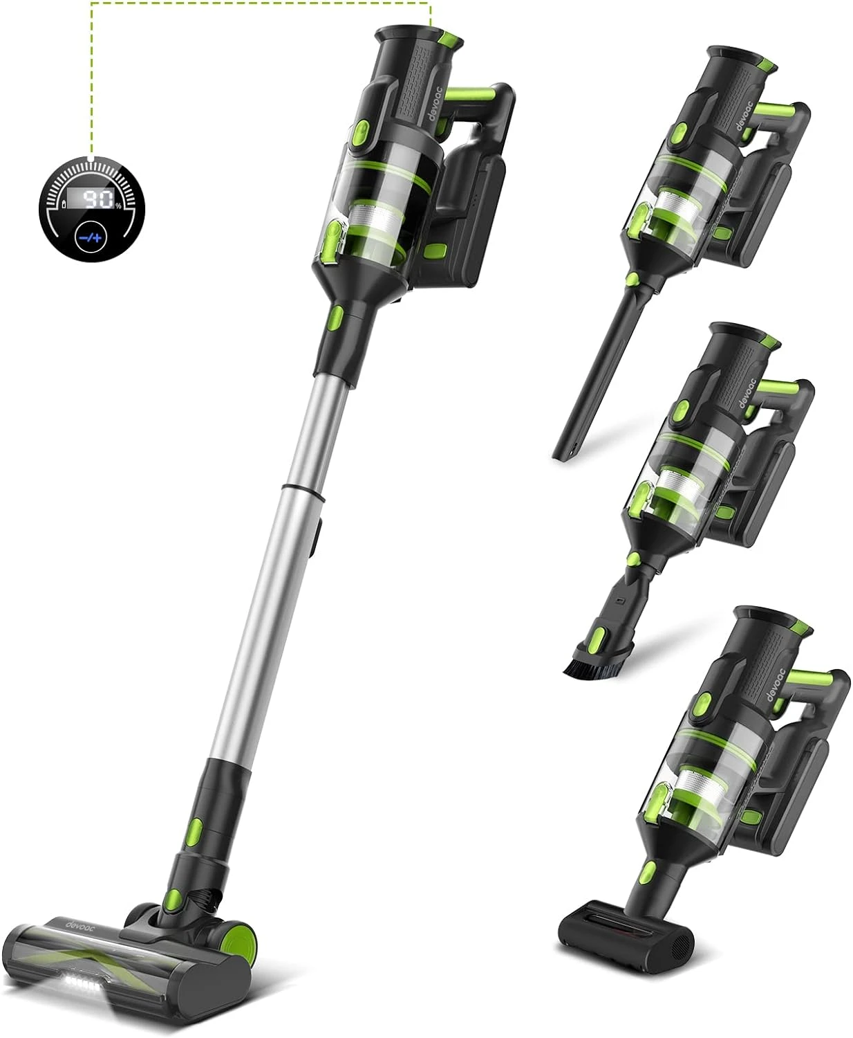 - New Linear Air Duct Design- DevoacTech M100 made a new linear air duct design. The motor, dust cup and multi-cone cyclone are in the same straight line, which greatly reduces the loss of suction power. The motor spins at 70,000 rpm, makes 140AW strong suction power, which is much more powerful than other vacuums. DevoacTech aims to provide a high-end product at affordable prics.