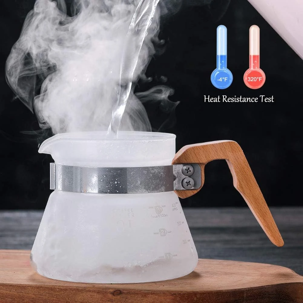 - 【Heat Resistant &Cold Resistant】Made of high-quality high borosilicate glass could be heated on a gas/electric stove, microwave oven, it would not be fragile when pouring hot water into this pour-over set. Safe temperature transformation from -4 to 248 degrees Fahrenheit.