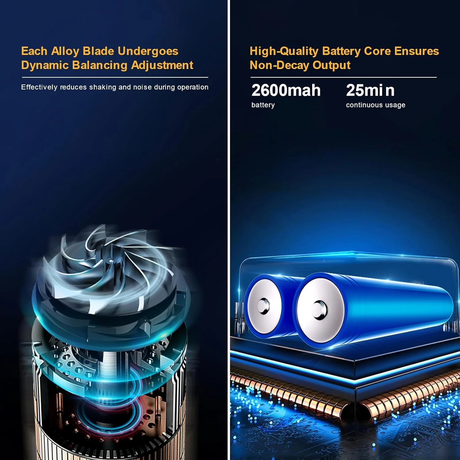 - FAST CHARGING & 25MIN LONG WORKING TIME—Equipped with a 2600mAh high-capacity lithium-ion battery that allows for a 25-minute running time and only takes 3 hours to fully charge. Our charging system is designed with temperature & input voltage & input current protection to ensure the safety of the device. The charging cable features a USB interface, making it suitable for various scenarios such as use in the car or at home.