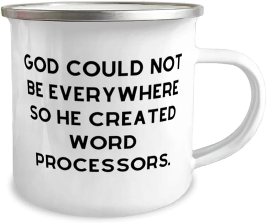 - Durable and Stylish: Our Word processor 12oz Camper Coffee Mug is made from high-quality stainless steel with an enamel finish, making it the perfect choice for anyone who loves camping, hiking, or just enjoying a good cup of coffee in the great outdoors.