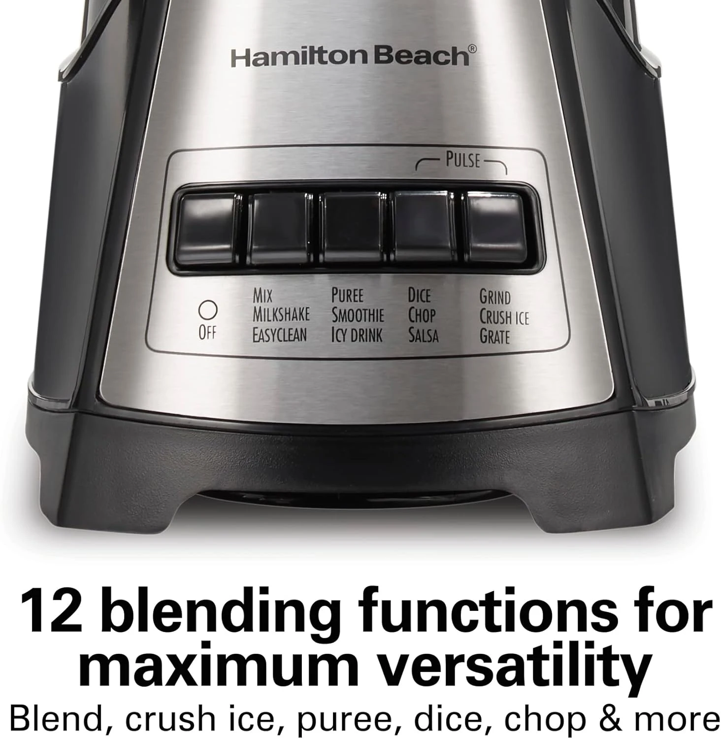 - 12 BLENDING FUNCTIONS FOR MAXIMUM VERSATILITY: This multi-function blender has 12 functions controlled by 5 simple buttons on the easy-to-read control panel; It blends and crushes ice for smoothies and milkshakes, purees, dices, chops and more