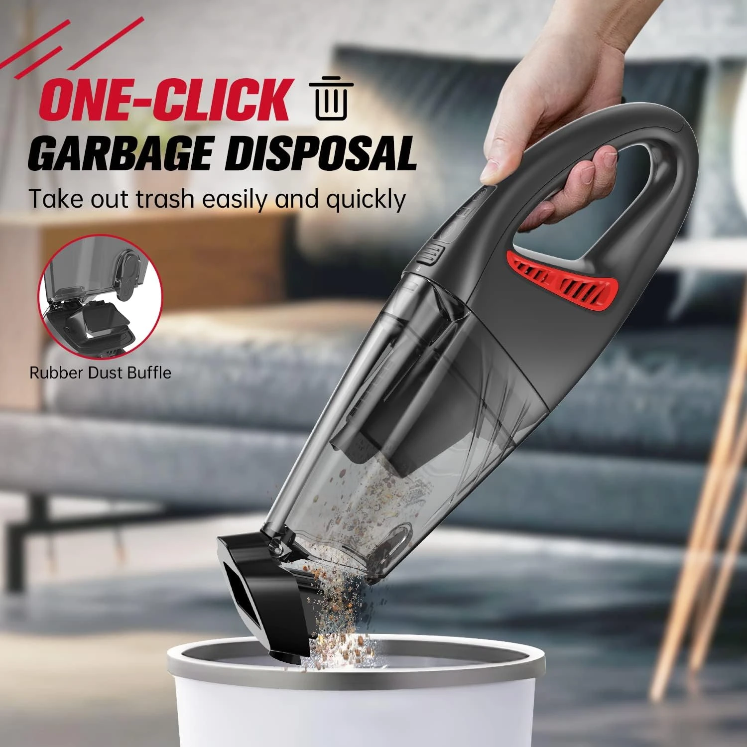 - ✅ DEEP CLEANING & NO BLIND CORNERS: The handheld vacuum is equipped with 2 multi-function accessories to support all-round cleaning. 450ML large-capacity transparent dust bucket, and the “one-button dust removal” design makes emptying easy. HEPA filter can effectively filter dust and fine particles to avoid secondary pollution. Regular cleaning of the washable filter prevents loss of suction and blockage, maintains good suction.
