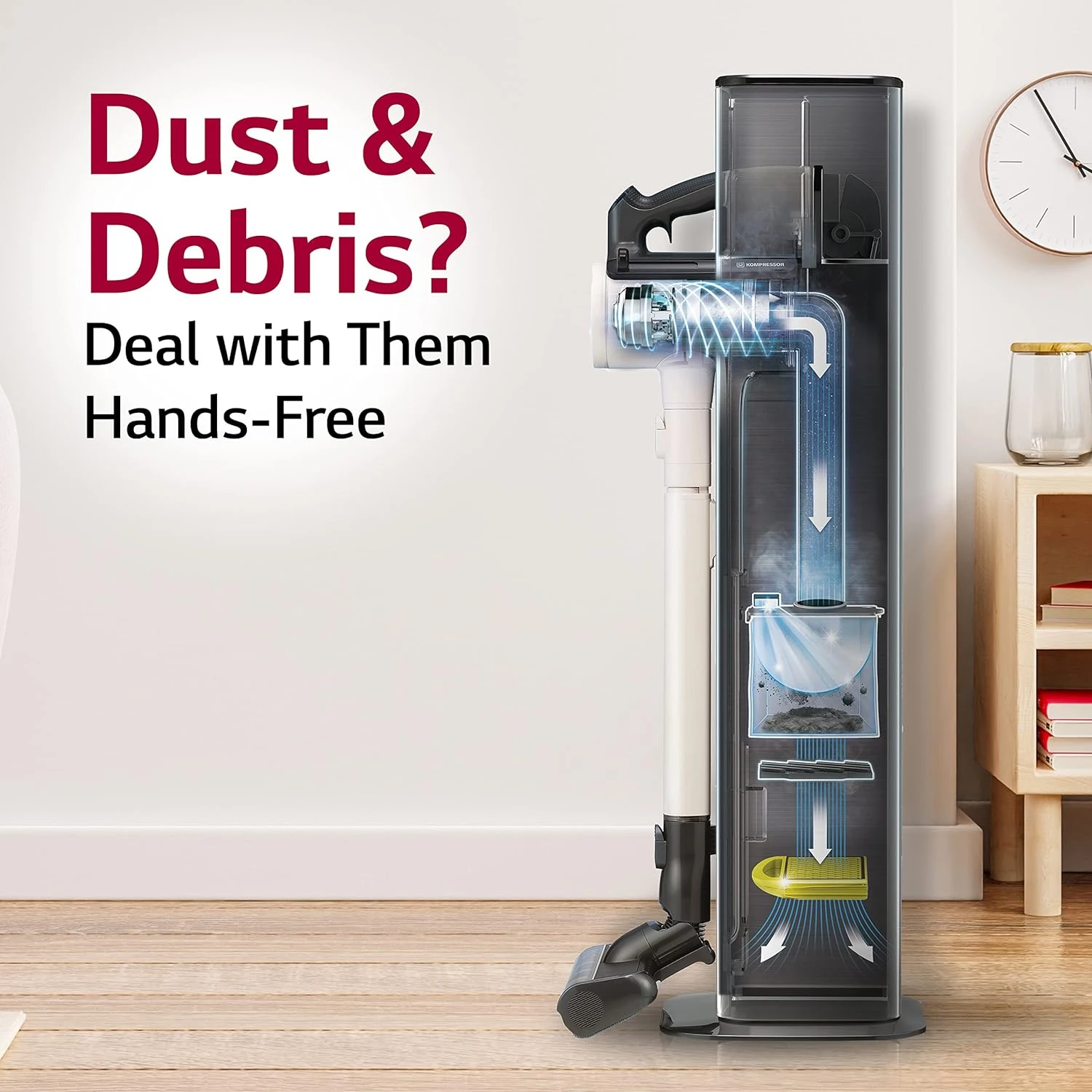 - KOMPRESSOR TECHNOLOGY – Allows for 2.4 times more** dust bin capacity