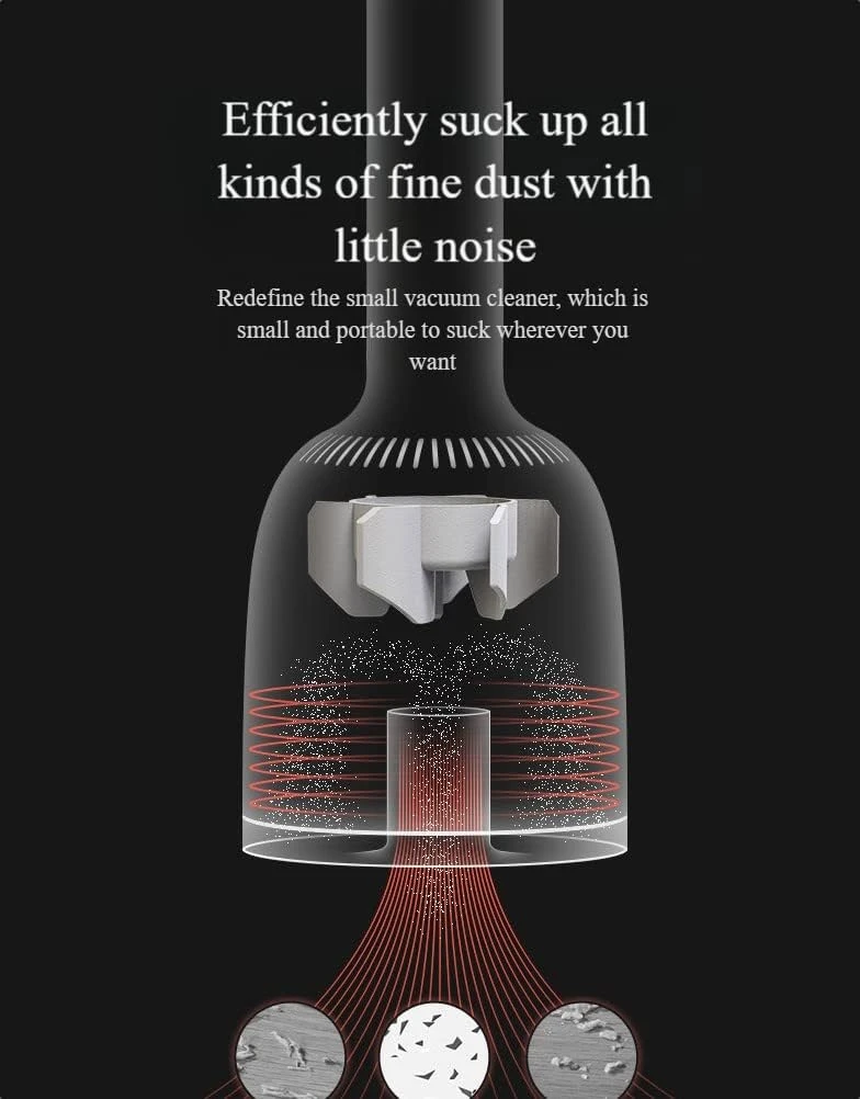 - 【Minimum Size】One-piece portable vacuum cleaner, product size: 2.68*2.68*7 inches, only 0.5 lbs. It can also be your car portable vacuum cleaner to clean your car interior at any time, it is small and easy to store.