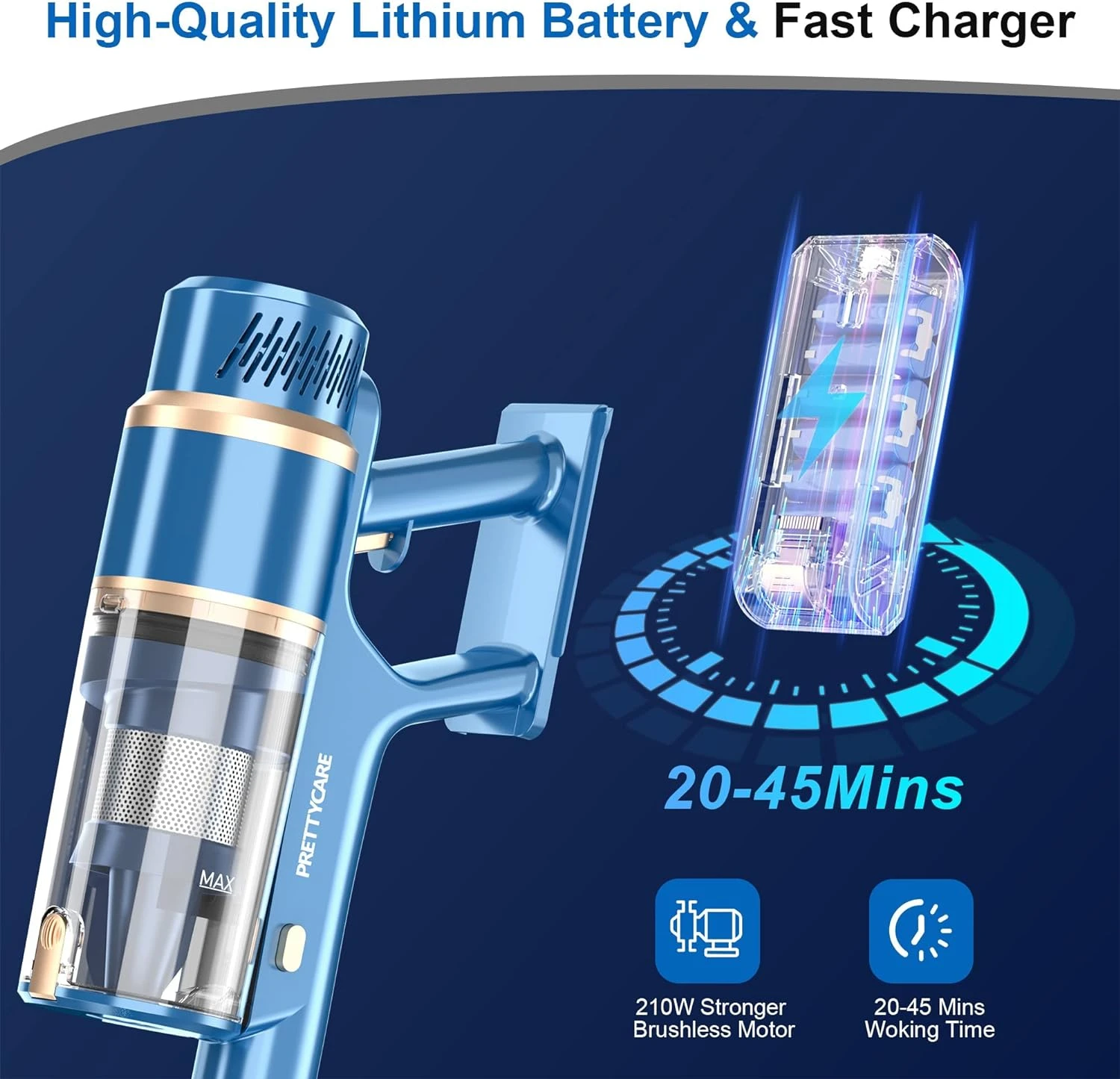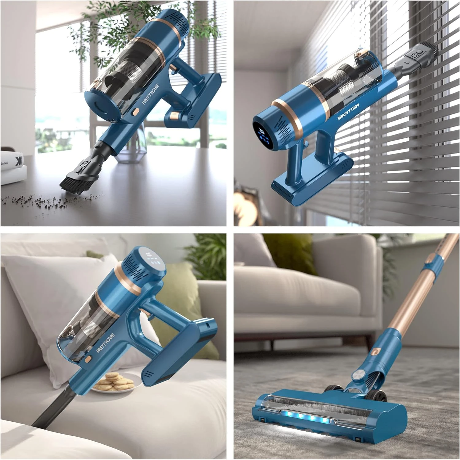 - 【28Kpa Super Powerful Brushless Motor】: PRETTYCARE cordless vacuum cleaner generates high-speed airflow with an upgraded powerful brushless motor and provides up to 28,000 Pa suction in maximum mode, which is very energy-saving and efficient, generates less heat and makes less noise , providing a quiet and pleasant experience. The wireless vacuum cleaner is suitable for all floors and easy to instantly picks up coffee beans, crumbs, pet hair, fine dust, and more.