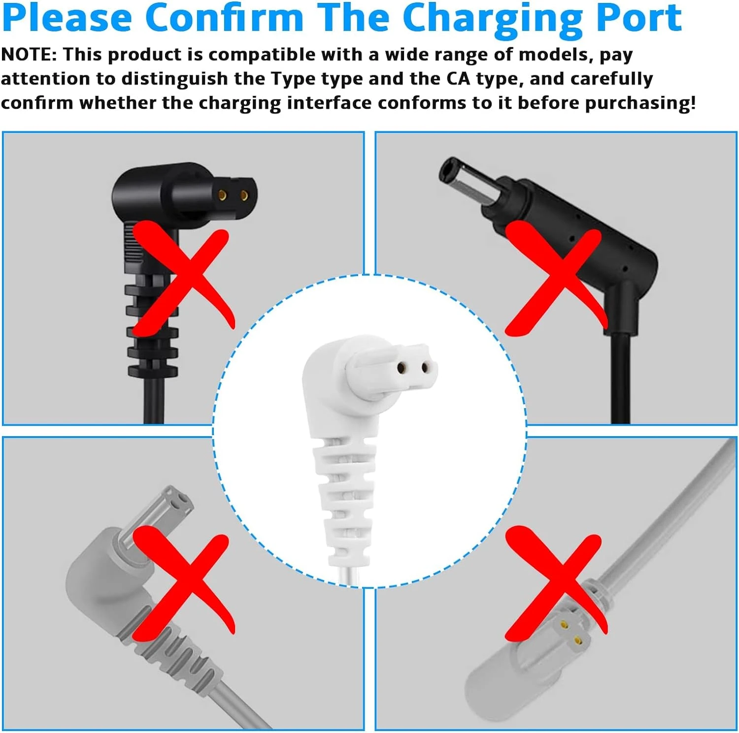 - NOTE: This product is compatible with a wide range of models, pay attention to distinguish the Type type and the CA type, and carefully confirm whether the charging interface conforms to it before purchasing!