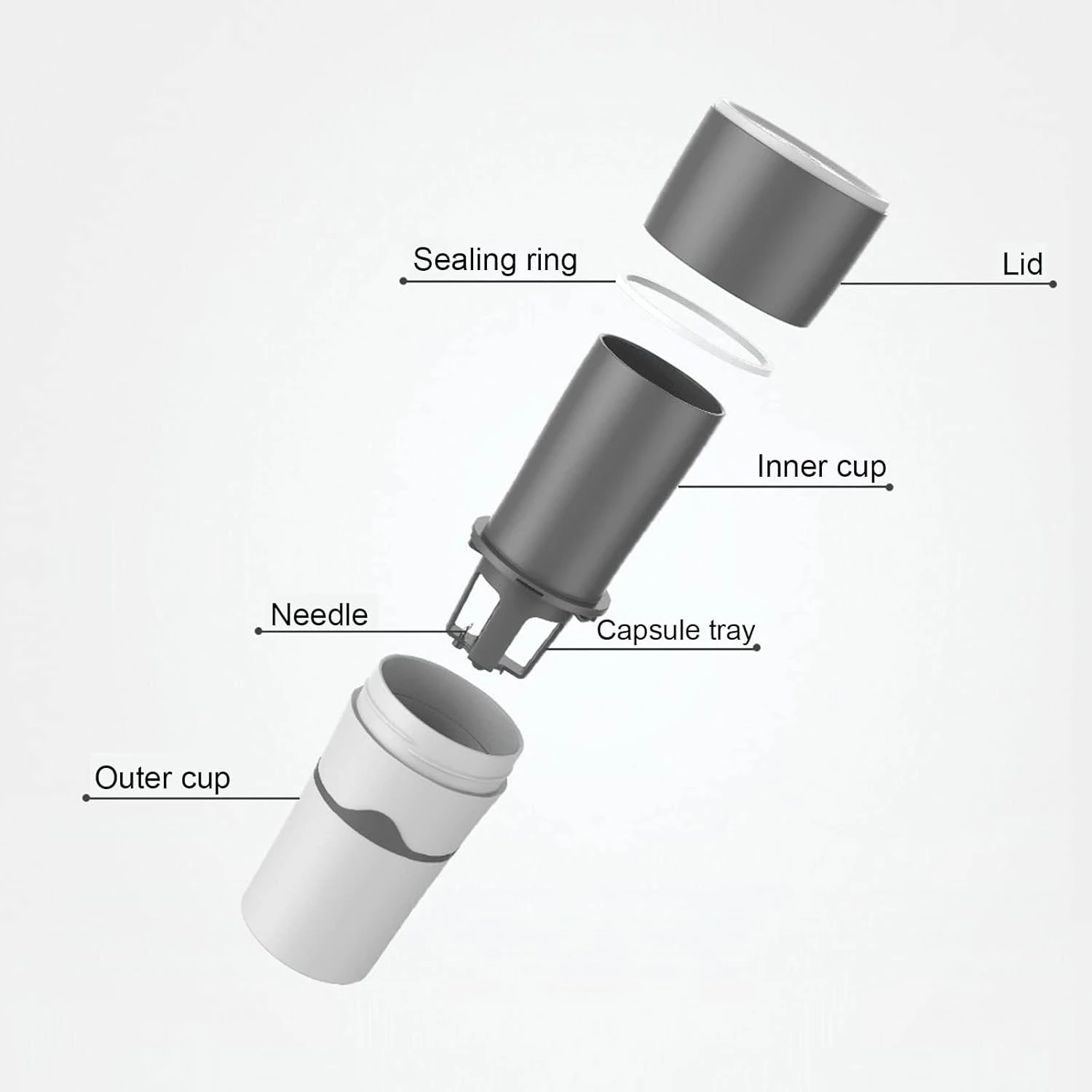 - Cup Capacity: Outer cup 450ml capacity used as a water cup alone, inner cup 240ml coffee making capacity, sharing cup 180ml the lid can be used as a sharing cup