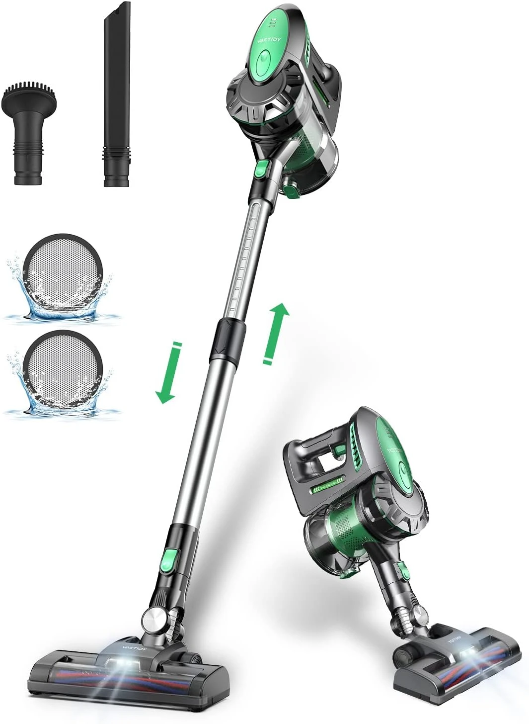 | Special Feature | 🌀6-in-1 Stick & Handheld Vacuum 🌀High-efficient Filtration System 🌀Washable HEPA and Strainer 🌀Lightweight and Compact Body 🌀Suitable for Hard Floor & Low Pile Carpet, 🌀20000Pa Strong Suction Power, 🌀2200mAh Detachable Battery, 🌀45min Long-lasting Running Time, 🌀Flexible head with LED headlight |