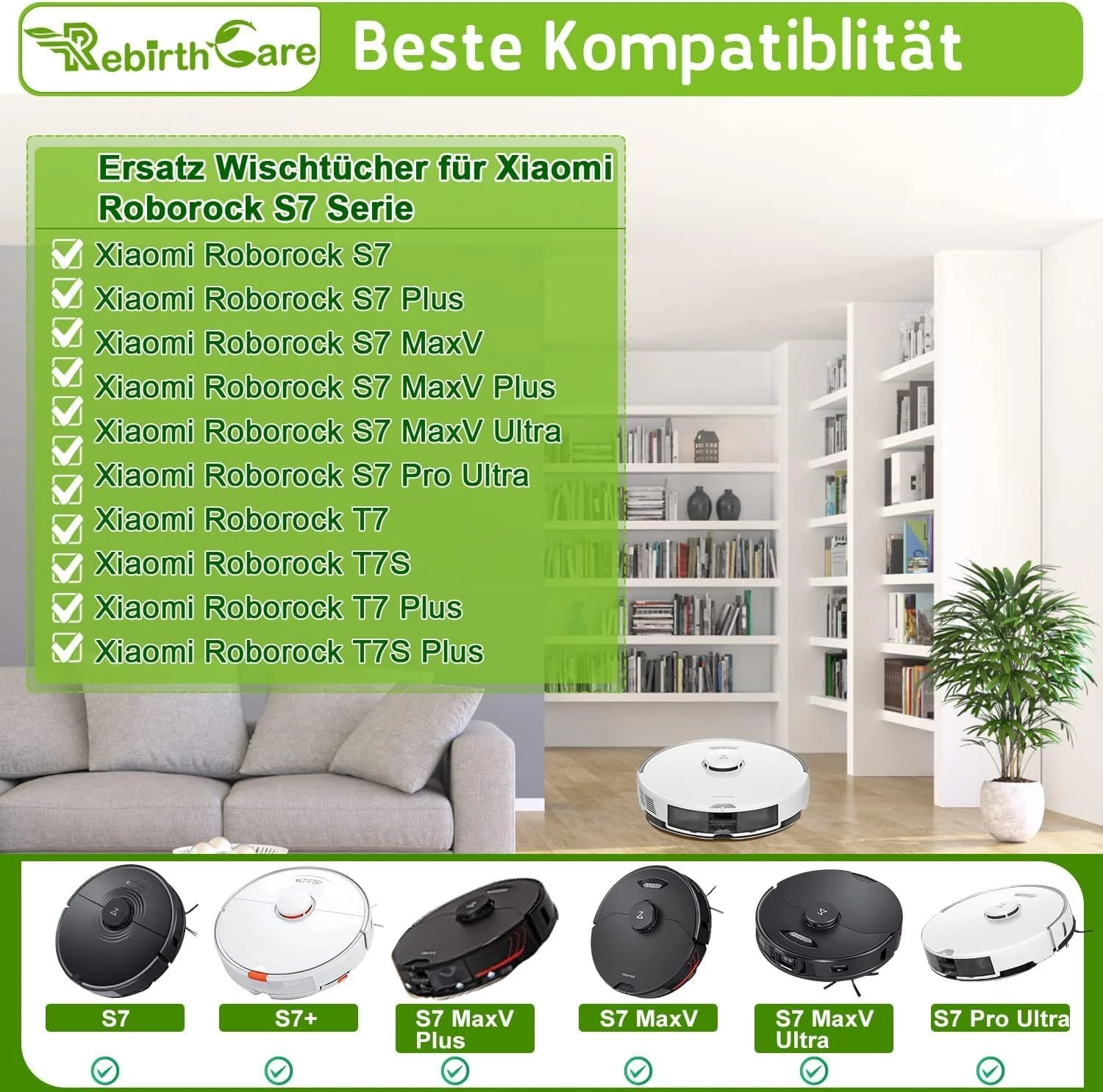 - 【Perfect Compatibility】Rebirthcare Replacement Mop for Roborock S7 Vacuum Cleaner S7 Plus S7 MaxV S7 MaxV Plus S7 MaxV Ultra S7 Pro Ultra T7 T7 Plus T7S T7SPlus. Please confirm your Vacuum Cleaner model before purchasing.