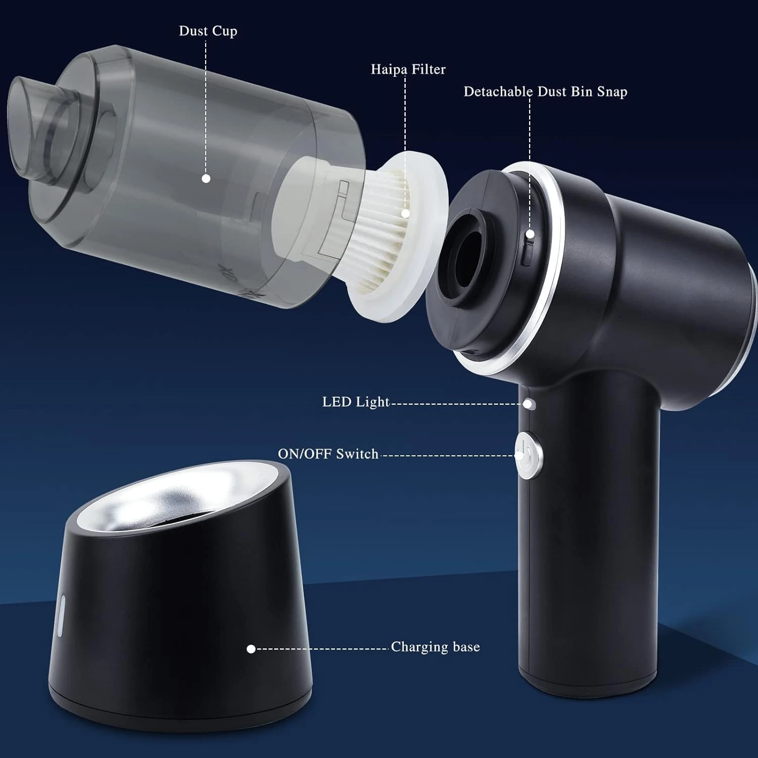 - 💎【Cordless Vacuum Cleaner】:This handheld car vacuum cleaner is cord-free design and portable, which can let you clean everywhere, includes hard to reach corners. It also designed with bright LED light, which can provide you an easy clean in darkness.