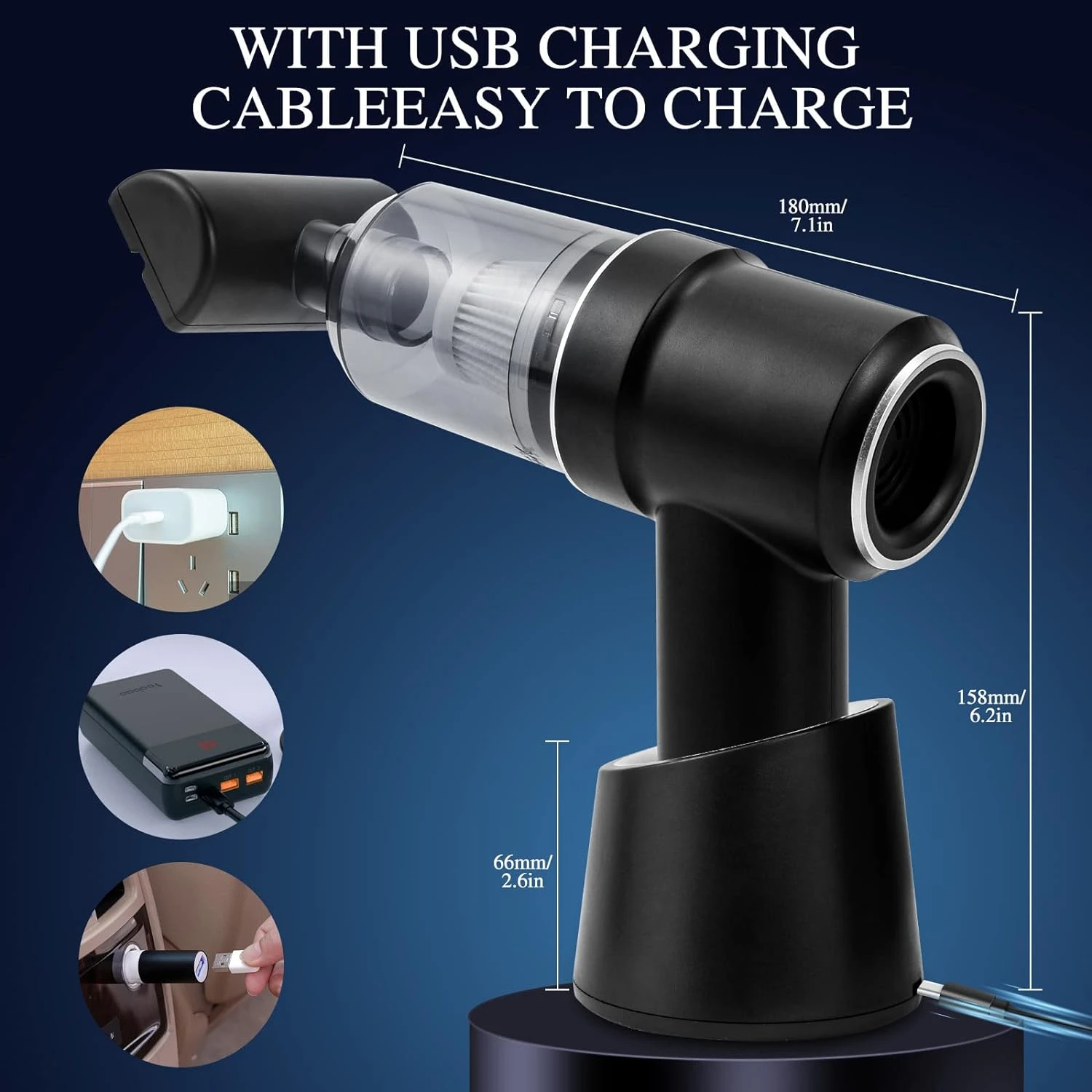- 💎【Cordless and USB Rechargeable】:This handheld vacuum cleaner adopts 4000mAh lithium-ion battery which can bring more suction power, and adopts 5V/2A adapter can quickly fully charge in 2.5-3 hours. The cordless design allows you to carry wireless vacuum easily. It is convenient to take away, easy to use this cordless handheld vacuum to clean dust and other tiny particles in car, at home and office.