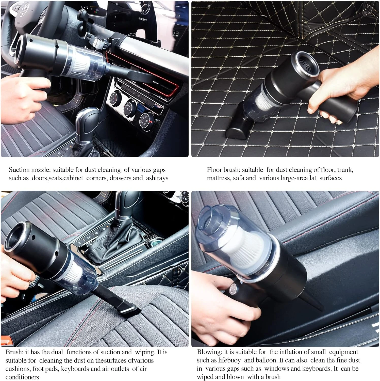 - 💎【Multifunctional Vacuum Cleane】:The package includes a wireless car vacuum cleaner, a multifunctional suction nozzle set, a multifunctional blow nozzle set, a floor brush, a charging line, a charging base and a manual, which can meet different detailing and cleaning, reaching under car seats, into trunks, into all the nooks and crannies of your vehicle and all house cleaning.